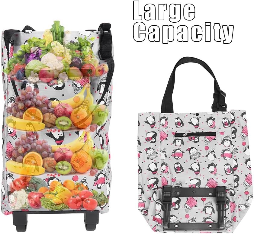 Versatile and Multipurpose: While ideal for grocery shopping, our roller shopping cart foldable and grocery bag cart for supermarket shopping can also be used for other purposes such as transporting laundry, carrying picnic supplies, or even as a travel bag. The grocery bag on wheels foldable and versatile rolling grocery tote for women are practical and multifunctional accessory