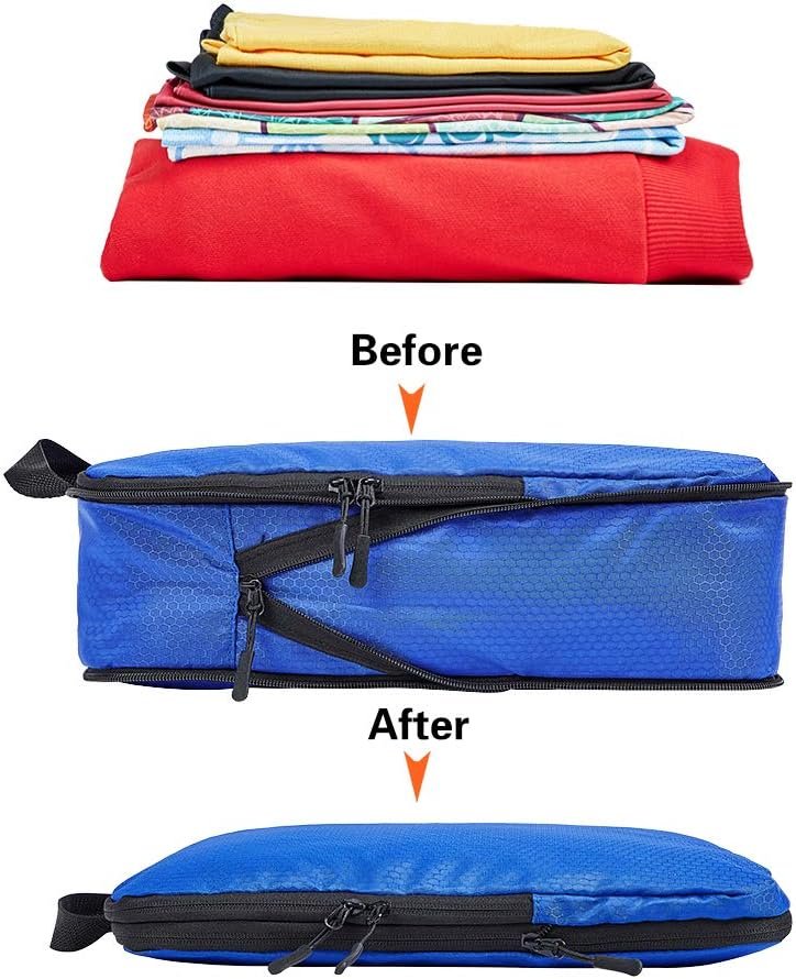 Space Saving by Compression: Sturdy double zipper compression system will help you compress your clothing into less space than you thought possible! Please note, the effectiveness of the compression is not as the vacuum compression bags do.