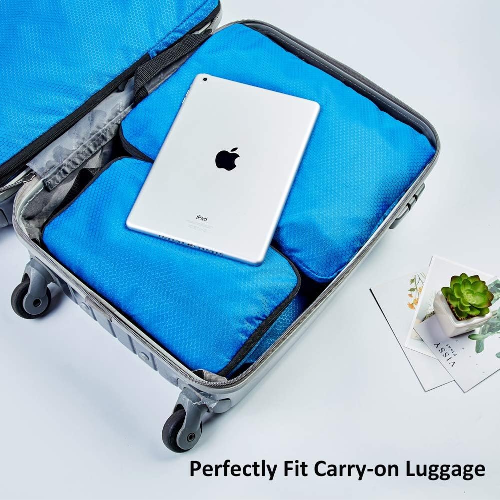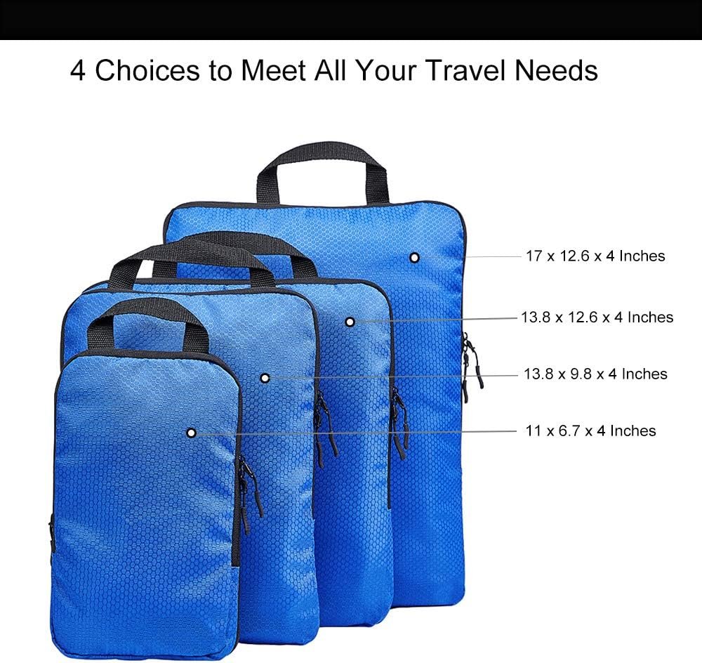 COVAX 4 Set Compression Packing Cubes, Travel Luggage Organizers and Storage Packing Cubes, Blue