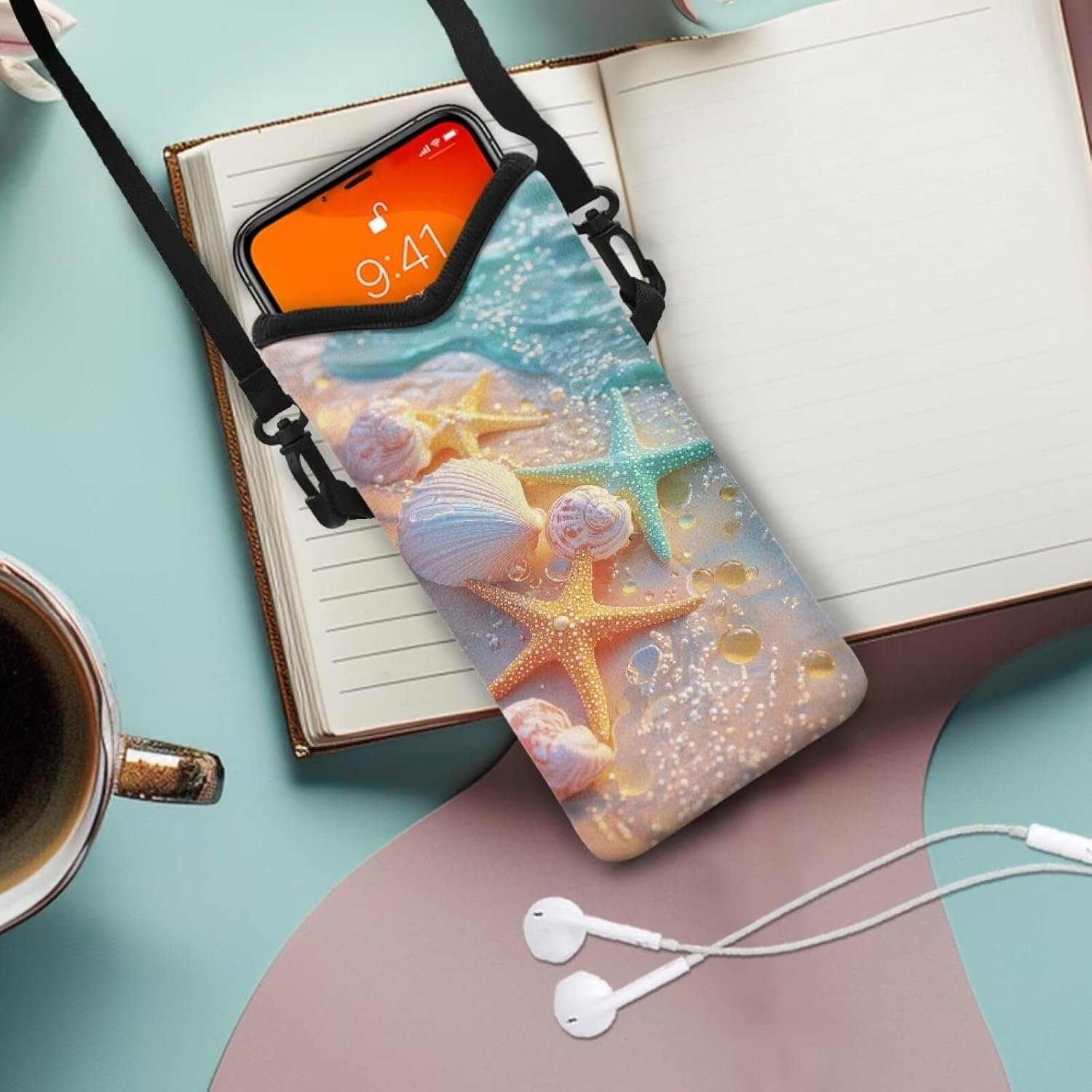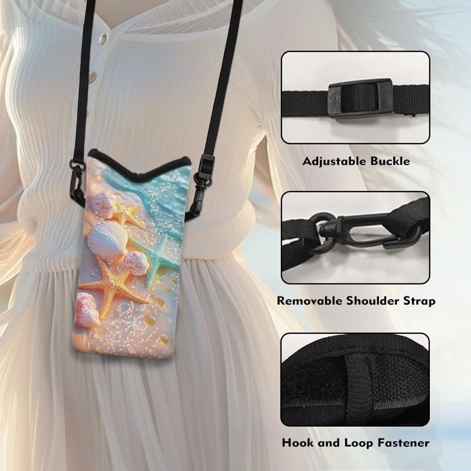 Cross Body Phone Bag for Women Men Water-Resistant Phone Bag Small Crossbody Bag Protective Smartphone Case Pouch Cellphone Pouch Purse Bag, 8 x 4 inch, Starfish Sea Shell Whelk Beach