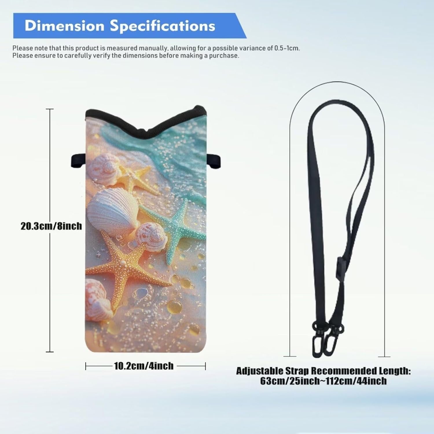 Size: 8 x 4 inch/(20.3 x 10.2 cm); this neoprene phone carry pouch is designed to fit most smartphones in the market, And other smartphone screens under 7 inches (including 7 inches); please measure the size before buying it