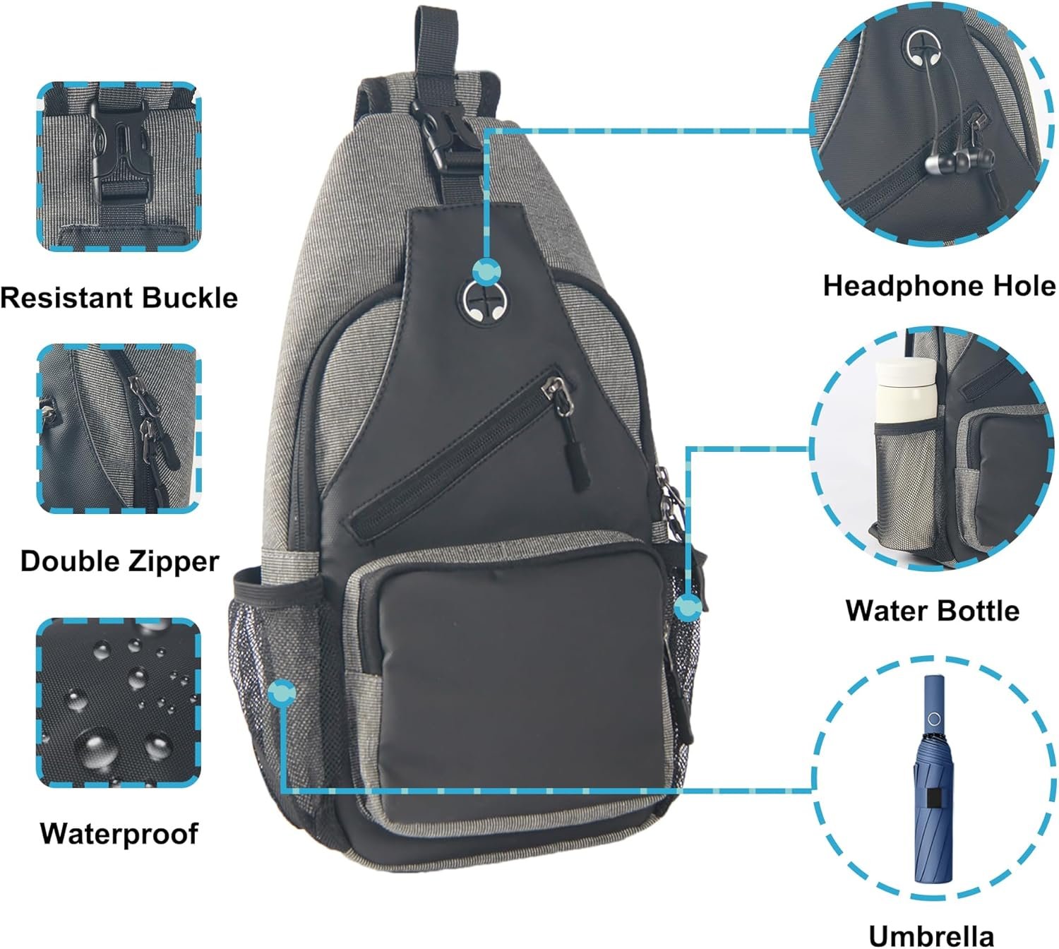 Crossbody Sling Bag for Men with Adjustable Shoulder Strap Shoulder Backpack Chest Bag Travel Hiking Daypacks