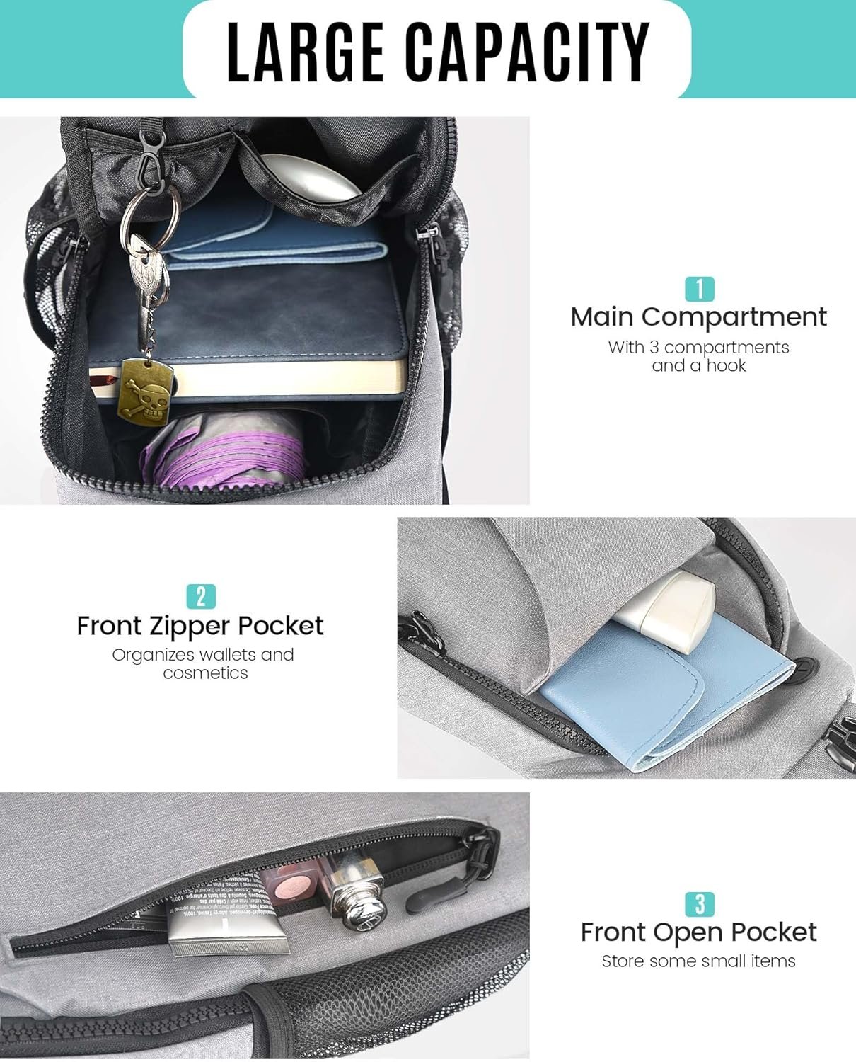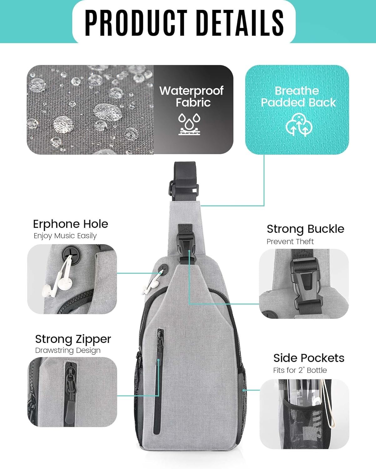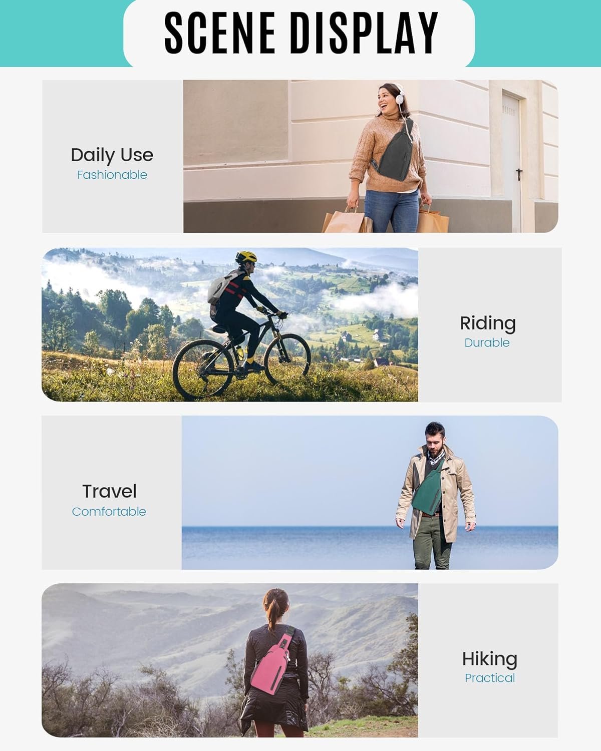 Crossbody Sling Bag for Women & Men, Waterproof Sling Backpack, Lightweight Shoulder Chest Bag for Hiking, Travel