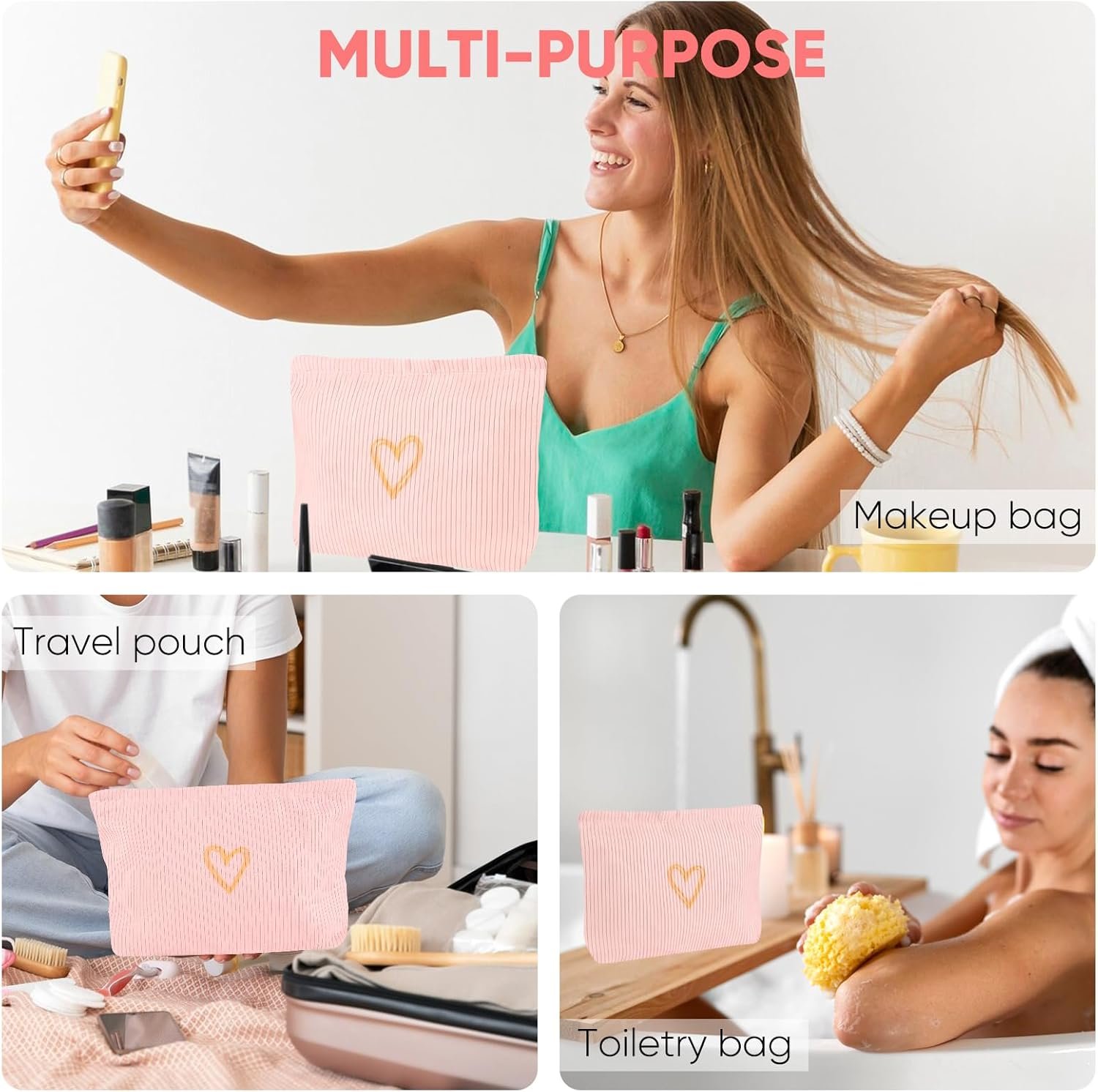 Cute Hearts Makeup Pouch for Women Small Make Up Bag for Purse Zipper Initial Makeup Cosmetic Bags Pouches for Purse Aesthetic Travel Toiletry Bags, Simple Pink Heart