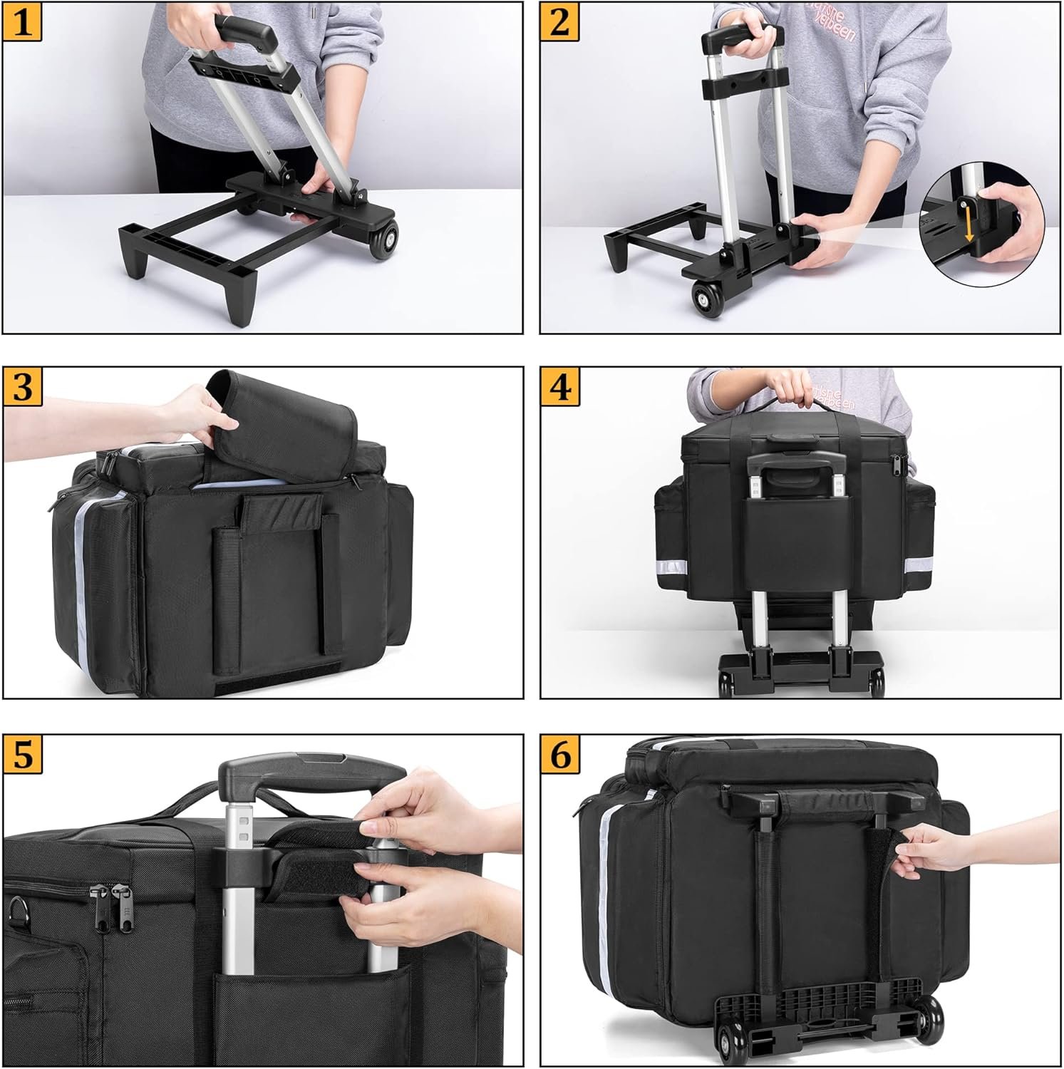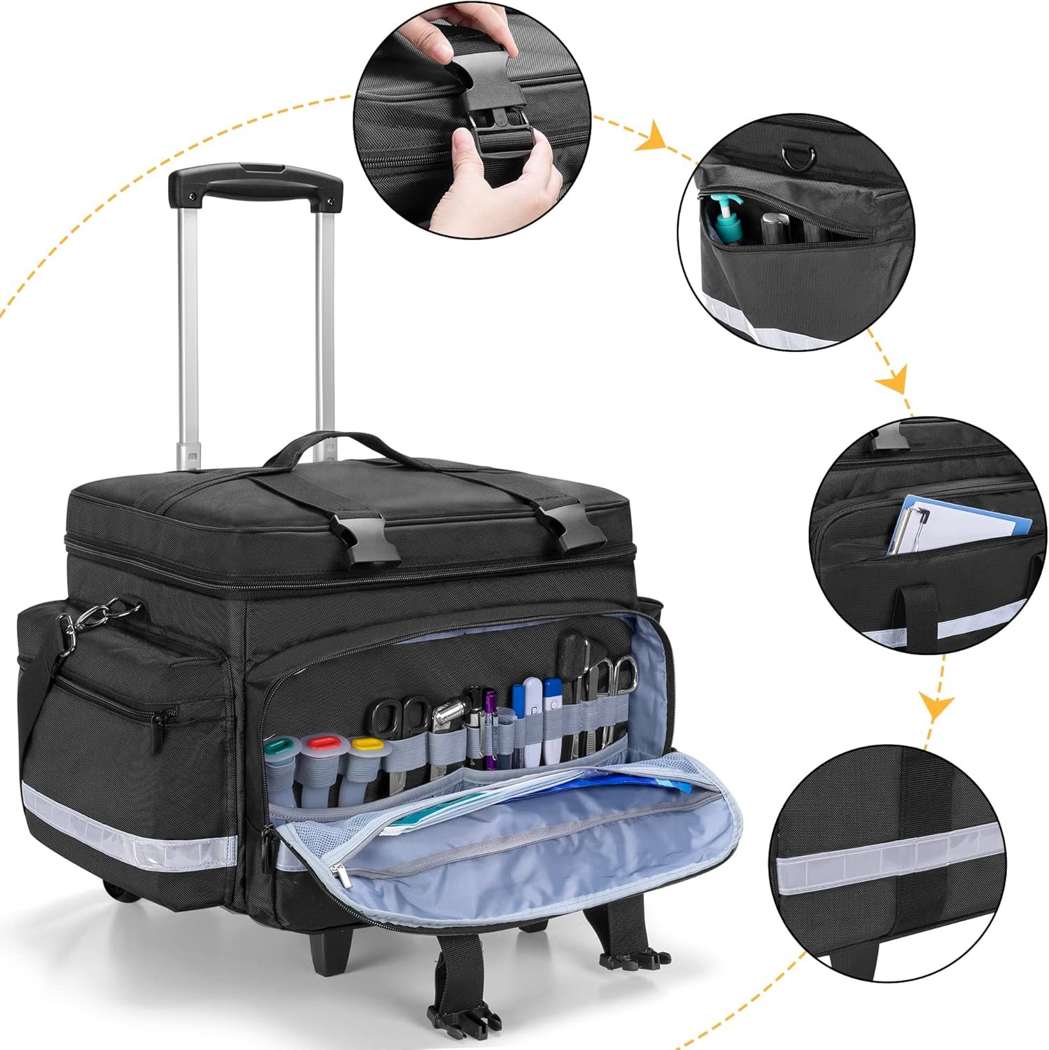 Damero Rolling Medical Bag with Detachable Trolley, Medical Equipment Bag with Removable Pouches and Dividers, First Aid Responder Bag Empty for Home Health Nurses, Doctors, EMT, EMS, Black