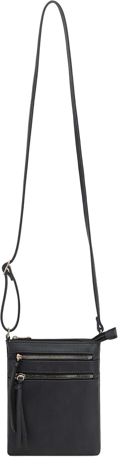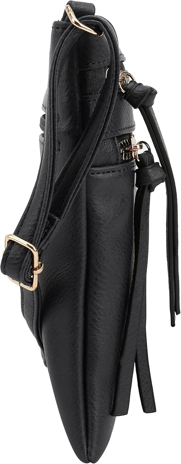 DELUXITY Crossbody Purse Bag Shoulder Bag Multi Pocket Zipper Purse | Black