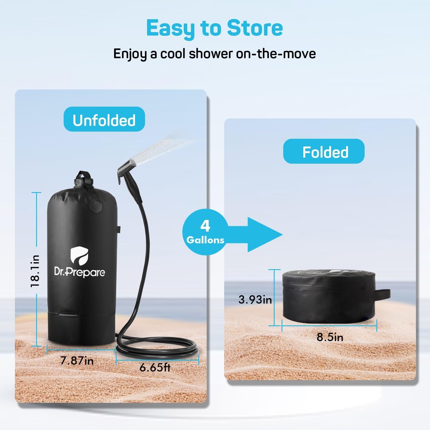 DR.PREPARE Portable Shower for Camping, 4 Gallons/15L Camping Shower Bag, Portable Outdoor Shower with Rechargeable Pump for Camping, Beach, Hiking, Climbing, Pet Cleaning
