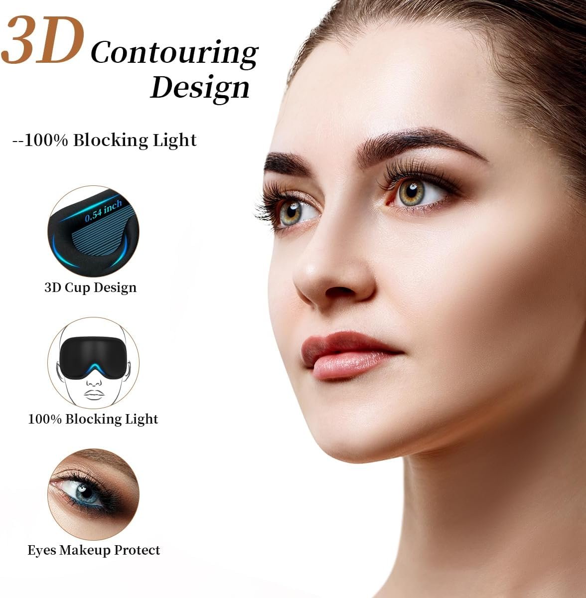 🩵 𝟯𝗗 𝐂𝐨𝐧𝐭𝐨𝐮𝐫𝐢𝐧𝐠 𝐃𝐞𝐬𝐢𝐠𝐧 & 𝟏𝟎𝟎% 𝐁𝐥𝐨𝐜𝐤𝐢𝐧𝐠 𝐋𝐢𝐠𝐡𝐭:The eye mask is created with a deeper eye socket structure that seamlessly fits with the skin, ensuring no pressure on the eyes while completely covering them to block out light and enhance the user’s quality of sleep. Additionally, the adjustable strap makes it suitable for individuals of any head size.