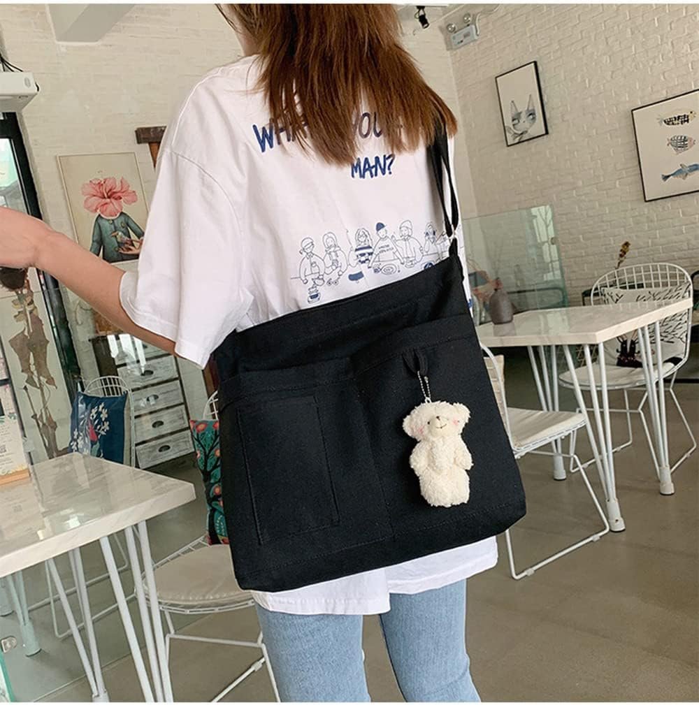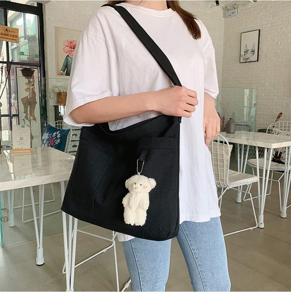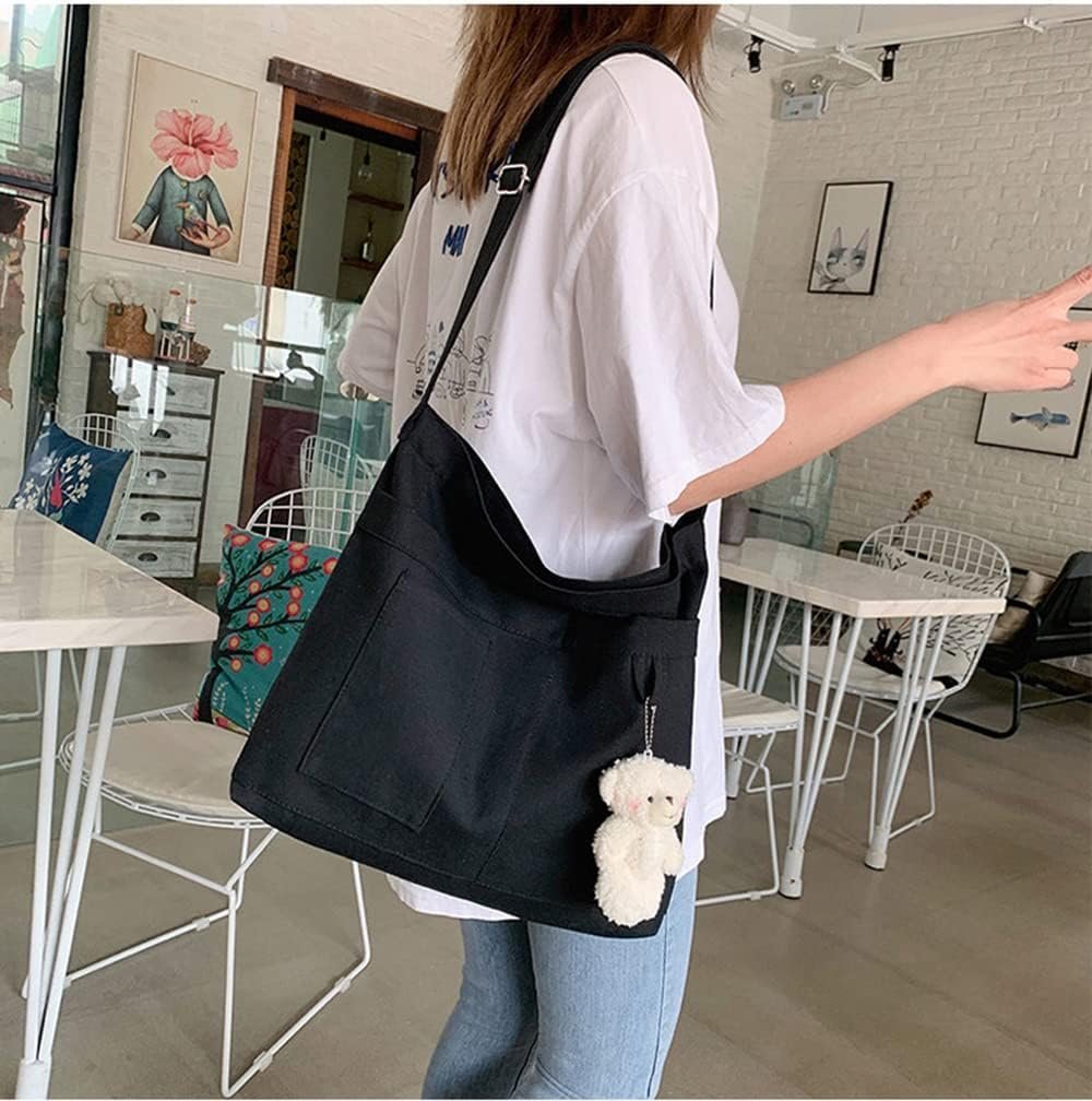 Economical Cotton Canvas Tote Bag,Women Hobo Shoulder Bag Crossbody Handbag with 3 External Pocket,Zipper Closure