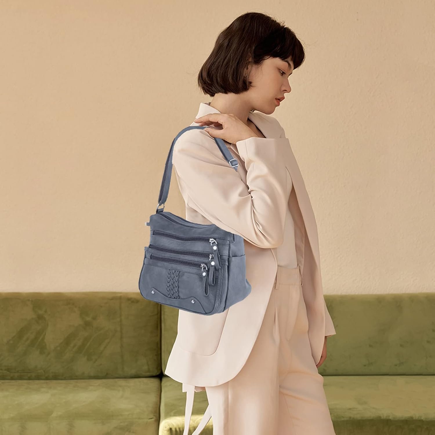 ELDA 10 Pockets Crossbody Purse for Women Medium Pocketbooks Ladies Soft PU Leather Shoulder Bag Ladies Top Handle Satchel