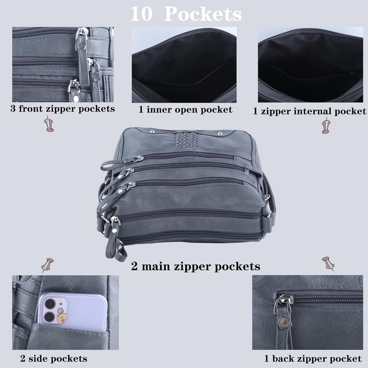 multi-zipper closure and multi-pockets design pocketbooks for women .