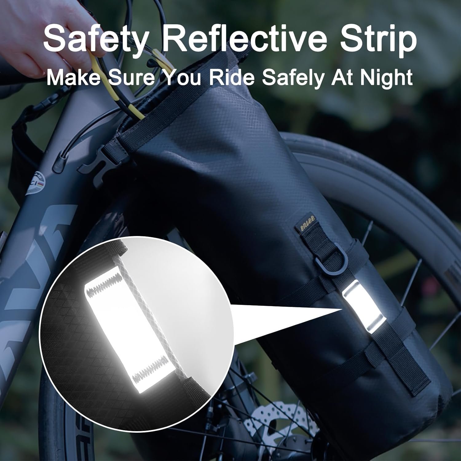 Reflective Safety Strip: This bike front fork bag has a reflective strip on the outside to enhance visibility during night cycling, ensuring your safety and being seen by others on the road, allowing for a safer ride.