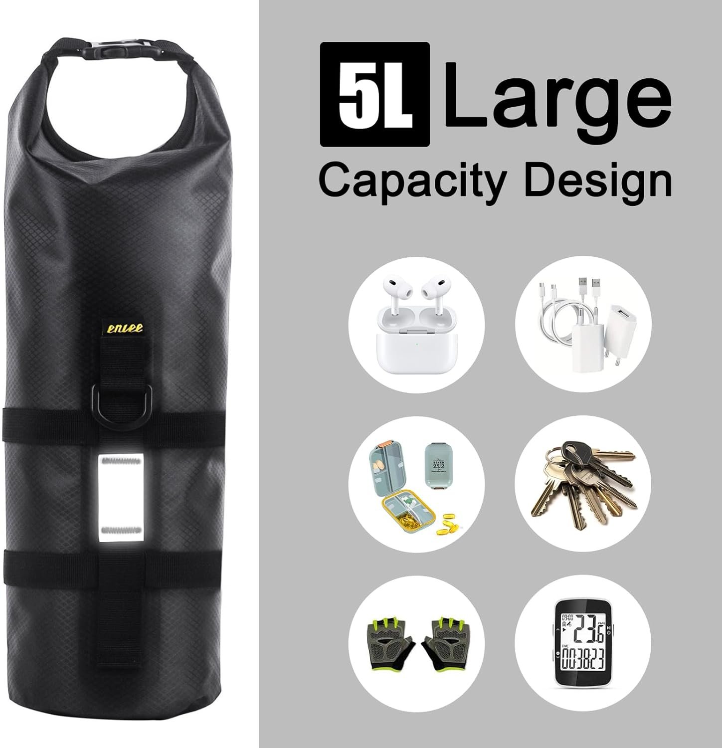 5L Large Capacity: Our bike racks bag offers ample storage space, perfect for carrying essentials like tools, snacks, and personal items for your cycling adventures.