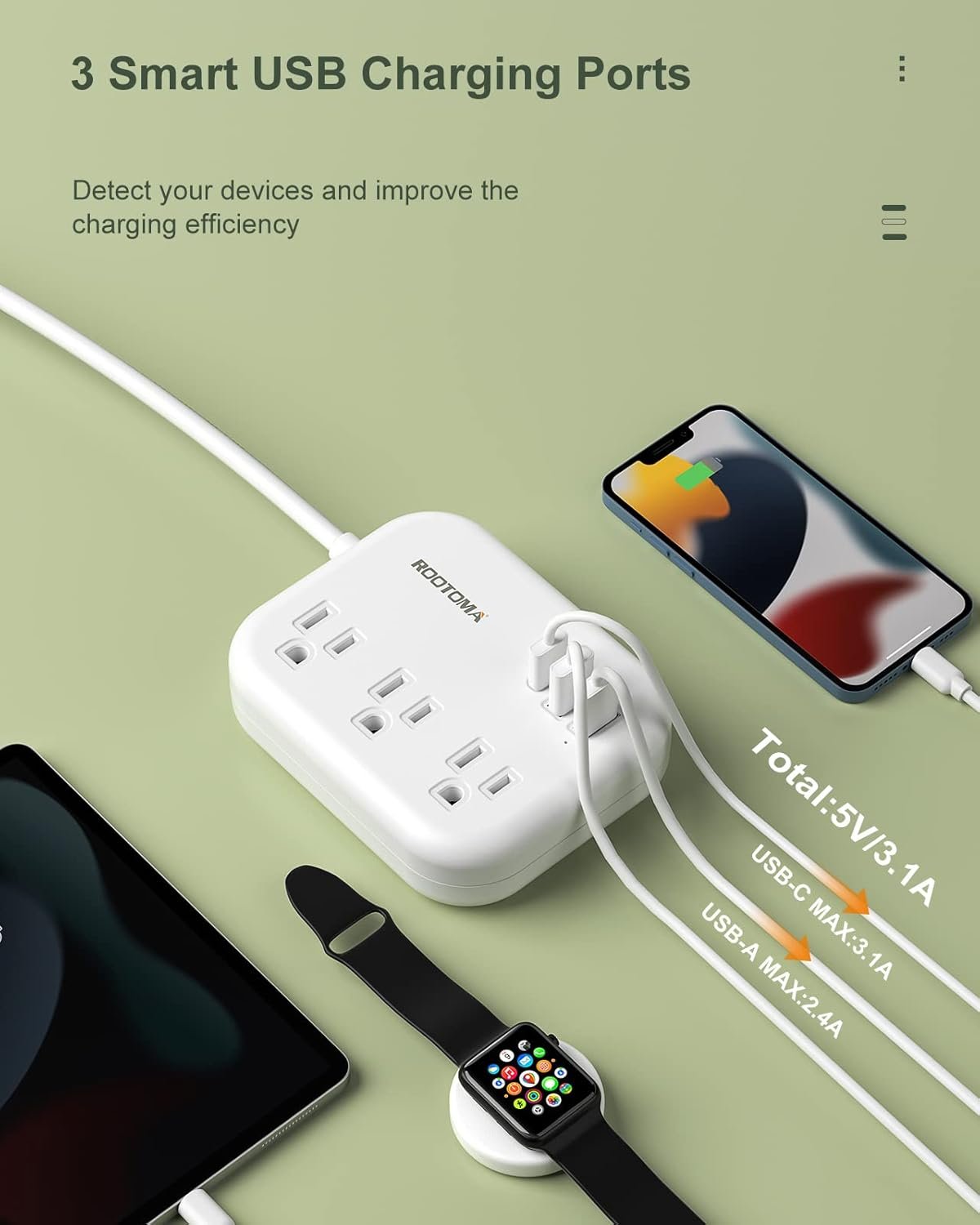 With smart charging technology, it can auto-detects your connected devices and can reach faster charging efficiency, And Featuring a USB-C port for charging compatible devices directly.
