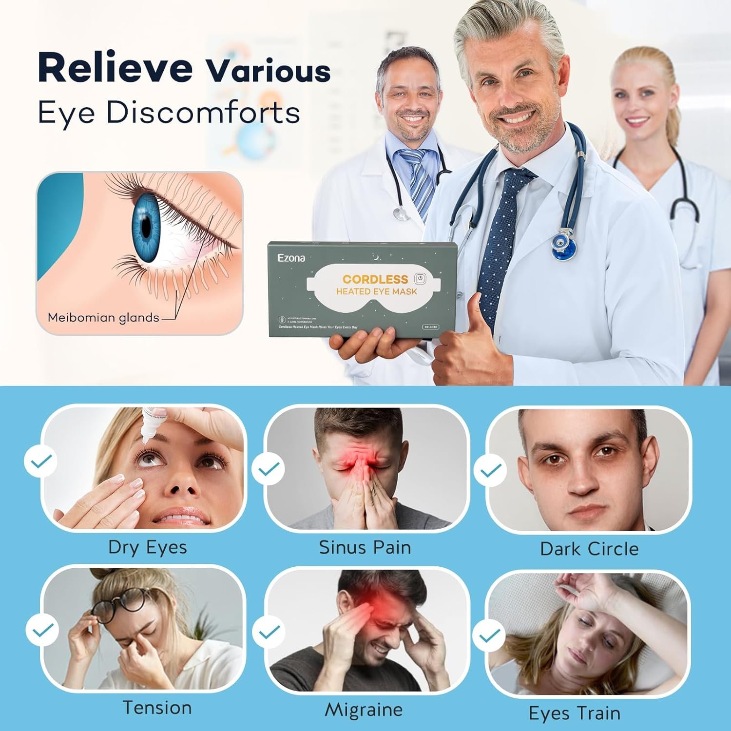 Relieves Common Eye Issues:Designed for anyone suffering from eye strain, our cordless heated eye mask uses natural glass beads to deliver gentle, even heat therapy. It helps relieve dryness, migraines, styes, and MGD while stimulating healthy oil secretion and boosting blood circulation for long-lasting comfort.
