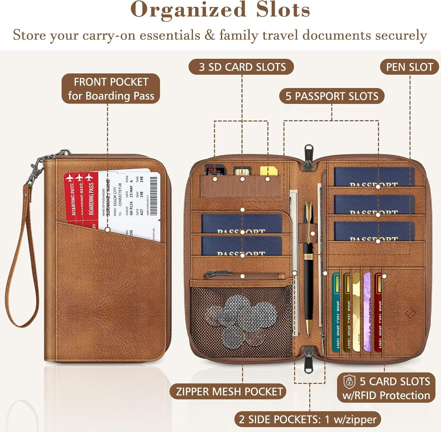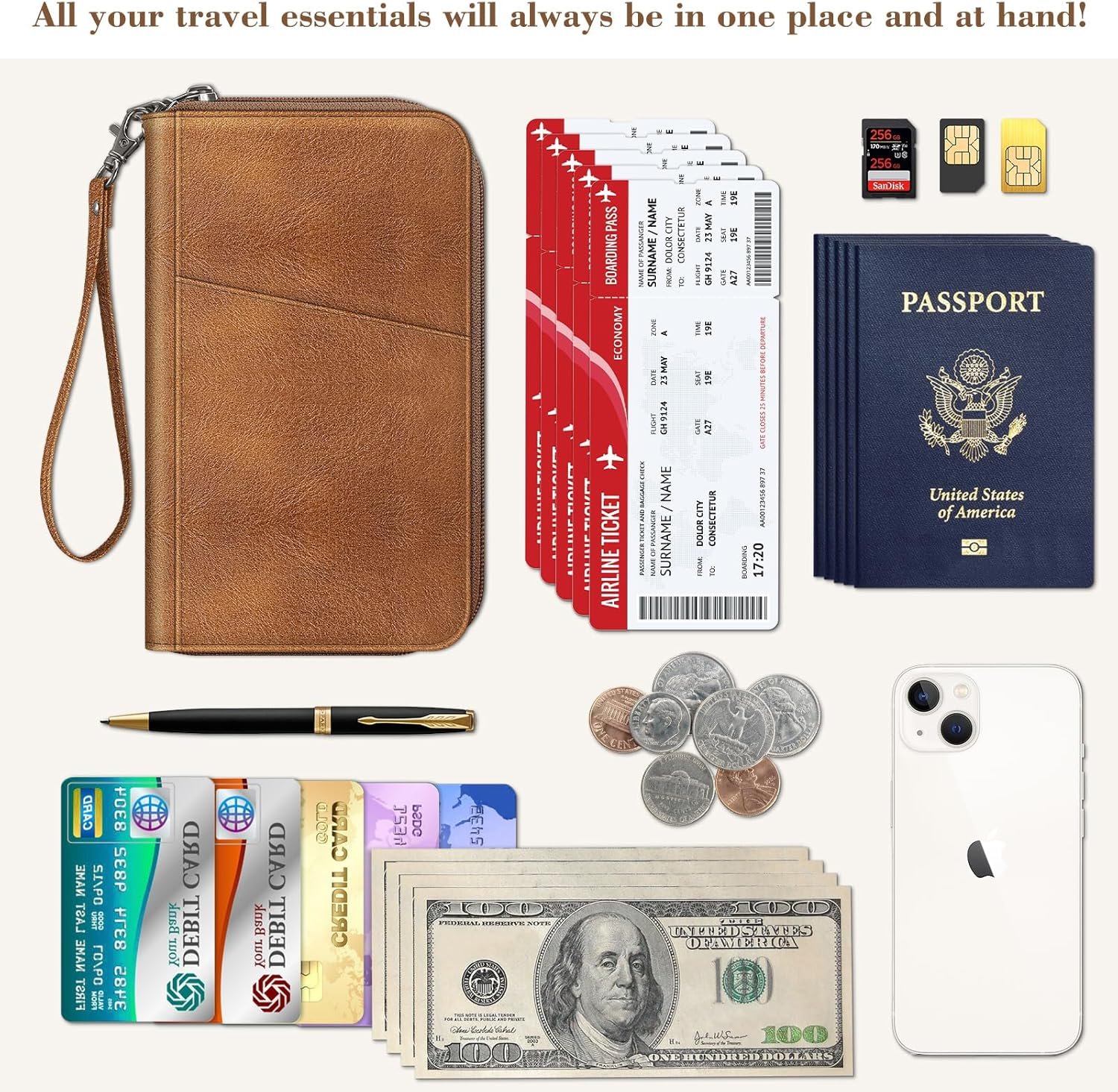 FINTIE Family Passport Holder Wallet, RFID Blocking Travel Document Organizer Clutch Bag Credit Cards Case Cover for Women Men