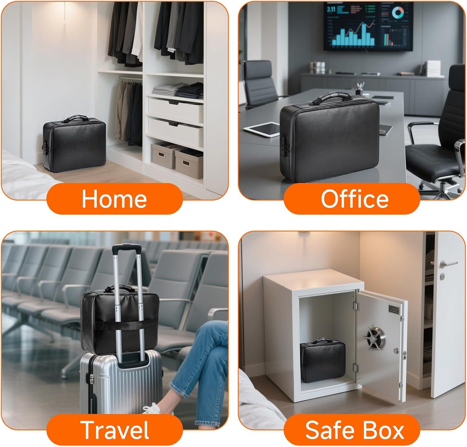🔥5200°F Fireproof & Waterproof Protection: Crafted with upgraded heat-insulated materials, this document organizer withstands temperatures up to 5200°F. Combined with water-resistant layers, it protects your valuables from fire, rain, and spills—perfect for home, office, or travel emergencies.