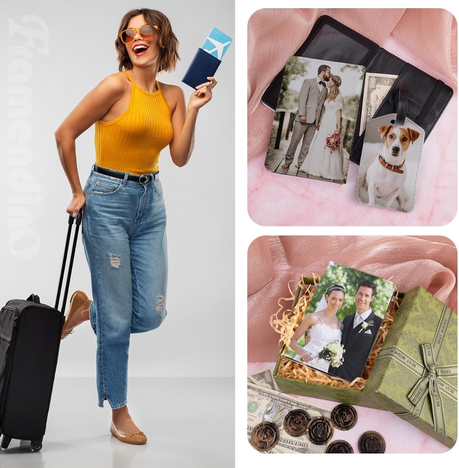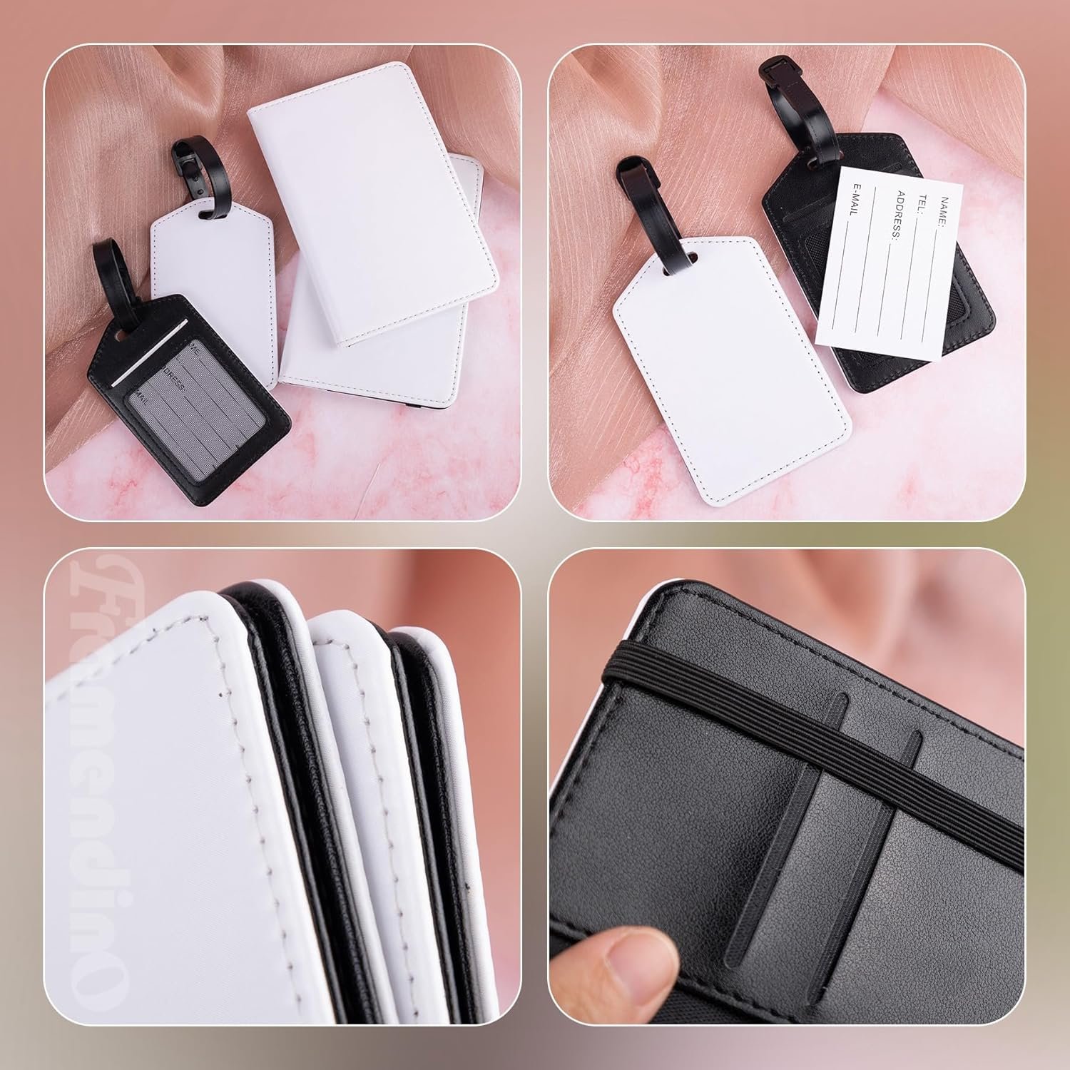 Framendino, 4 Pack Sublimation Passport Cover and Luggage Tag Set Leather Blank Tavel Book Holder Wallet with Travel ID for Business
