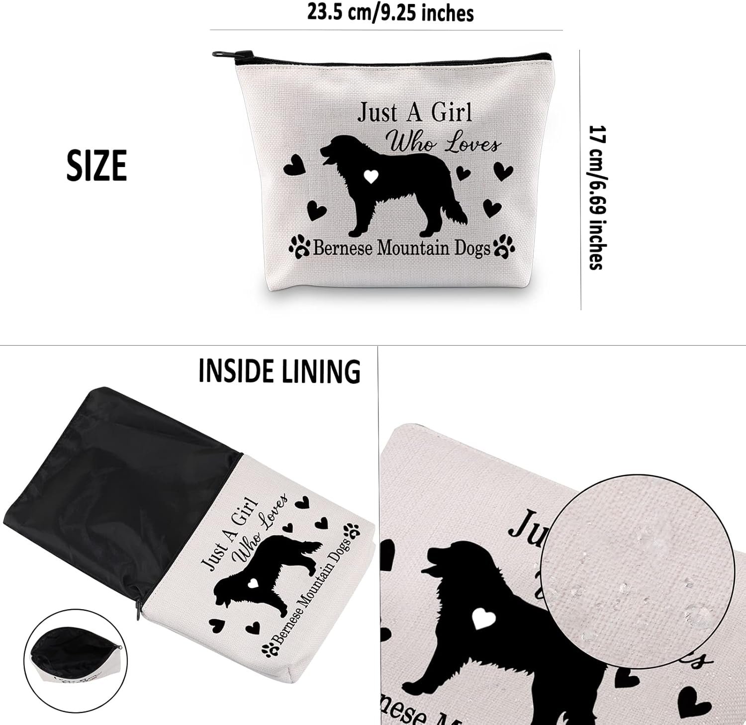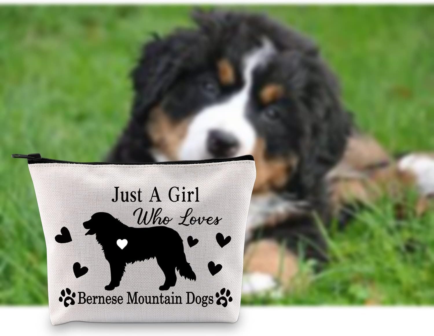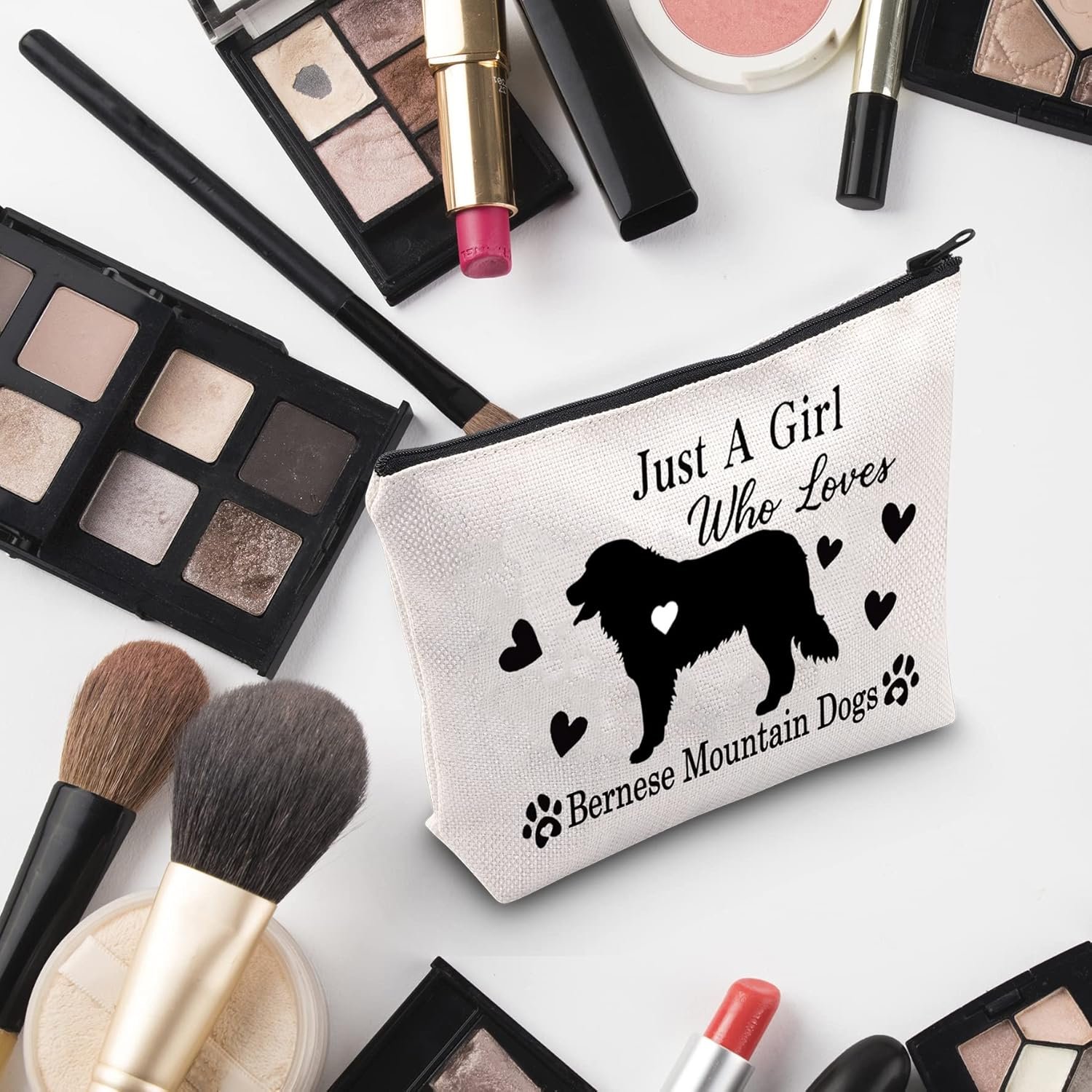 G2TUP Bernese Mountain Dog Lover Gift Who Loves Bernese Mountain Dogs Makeup Bag Bernese Mountain Mom Cosmetic Bag Dog Mama Travel Bag (Just a Girl Who Loves Bernese White Bag)