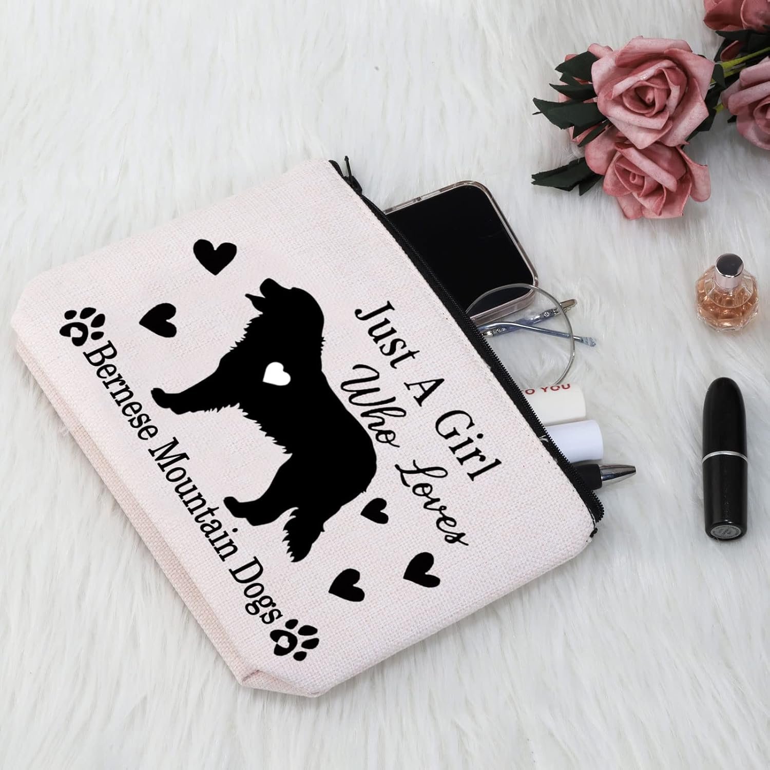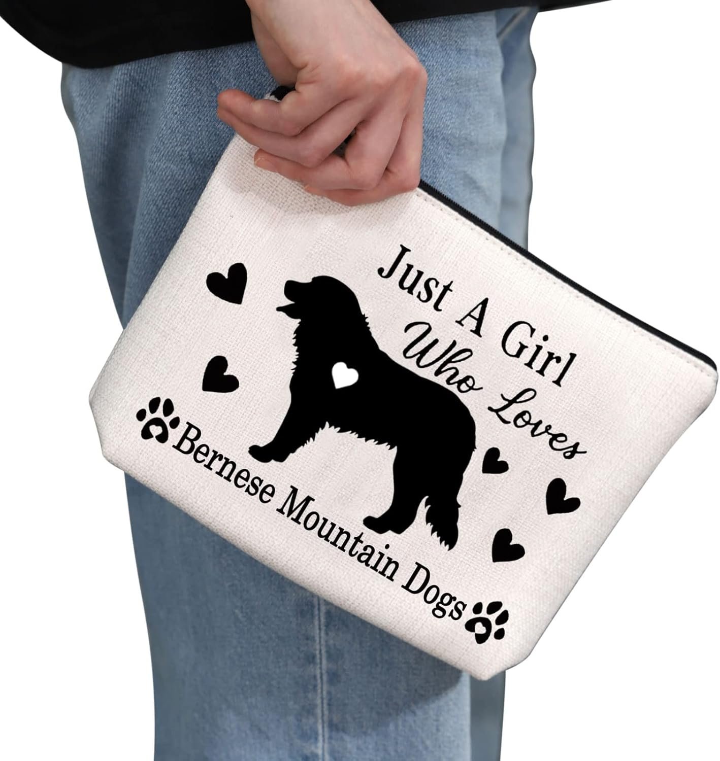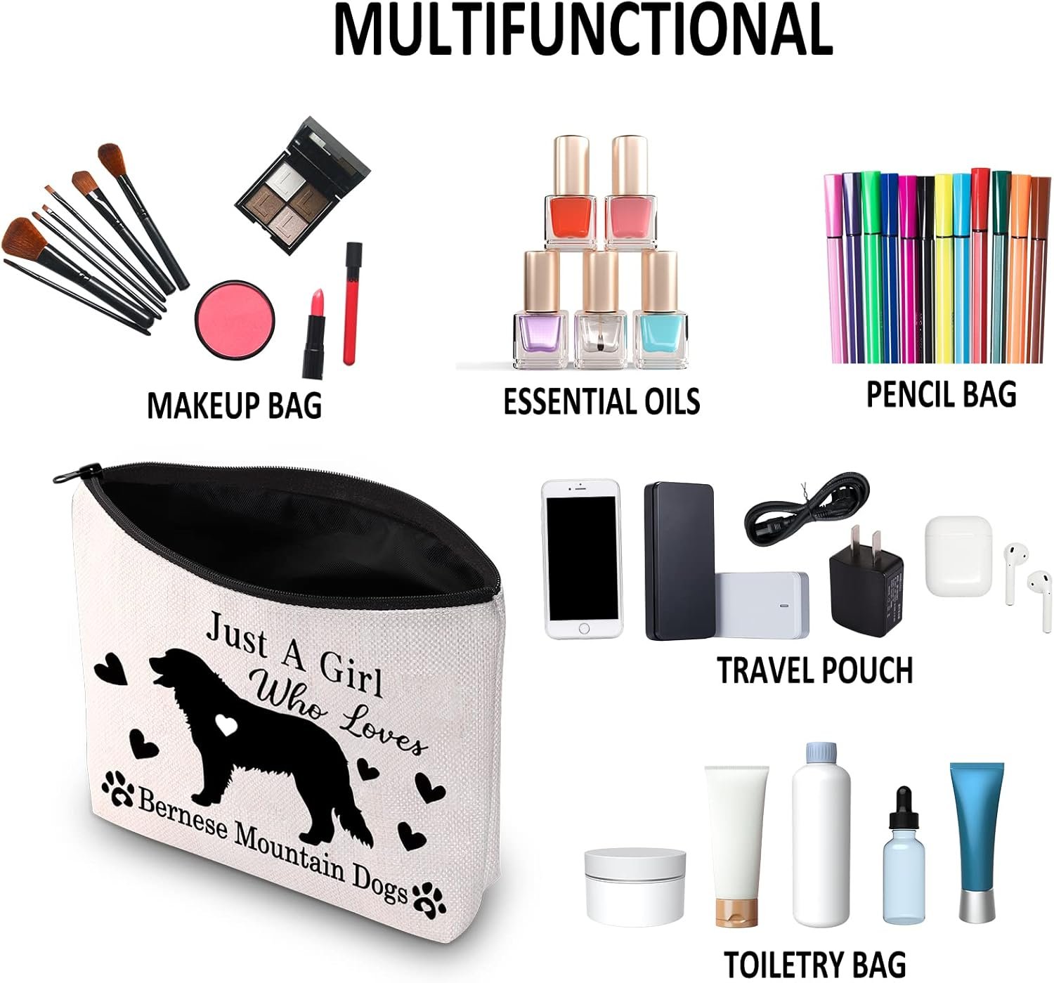 G2TUP Bernese Mountain Dog Lover Gift Who Loves Bernese Mountain Dogs Makeup Bag Bernese Mountain Mom Cosmetic Bag Dog Mama Travel Bag (Just a Girl Who Loves Bernese White Bag)