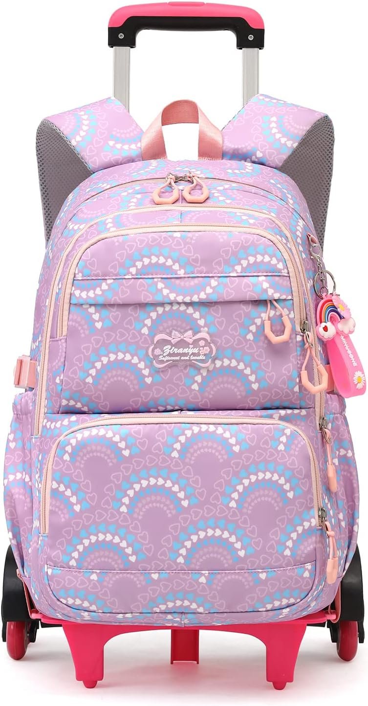Girls Rolling Backpack Elementary Student Outdoor Travel Trolley Bag Bookbag with Wheels