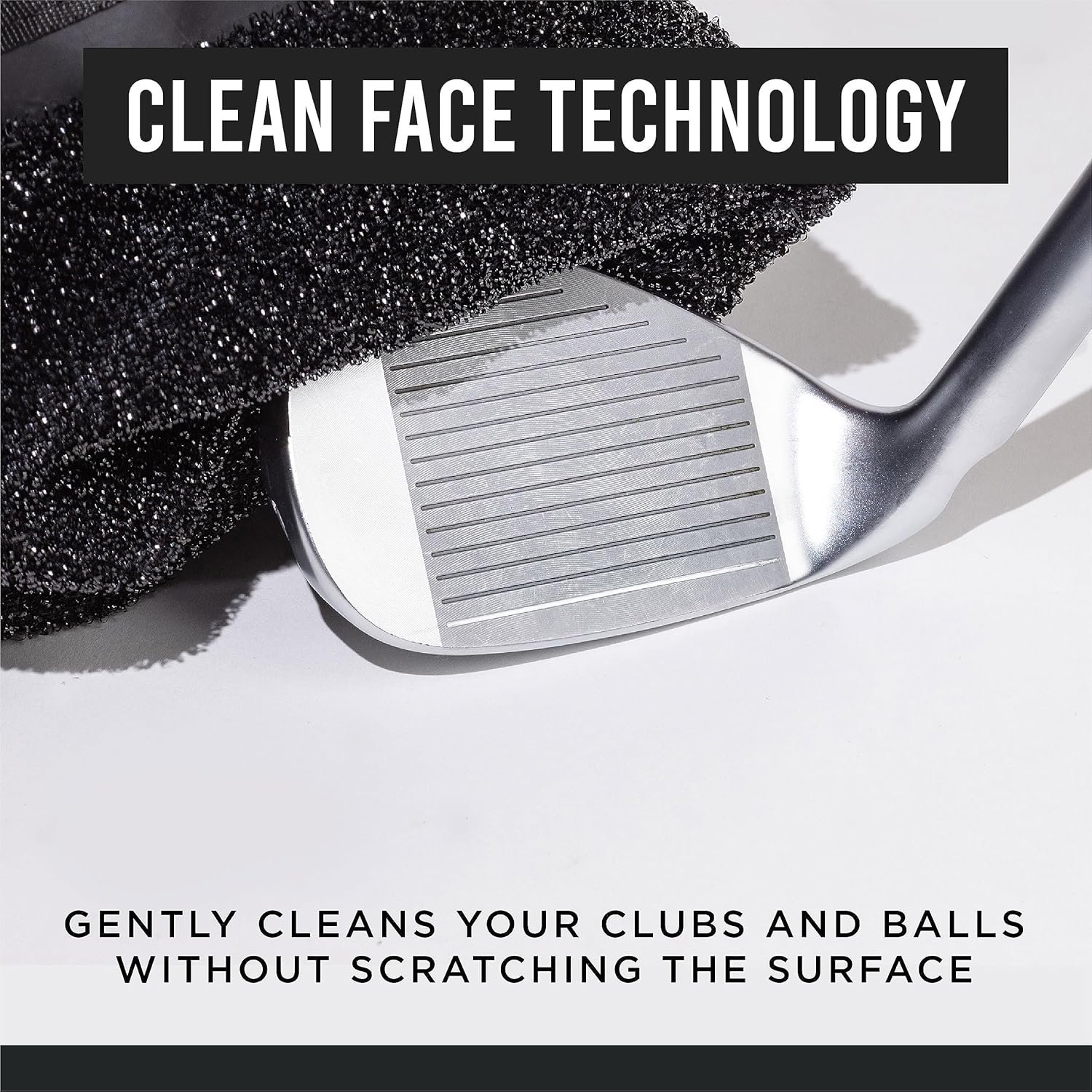 CLEAN FACE TECHNOLOGY The Club Scrub utilizes Clean Face Technology that gently cleans your clubs and balls without scratching the surface to ensure proper contact, spin, flight, and roll with every stroke.