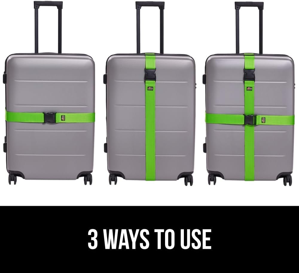 GORILLA GRIP Heavy Duty Adjustable Luggage Straps for Suitcases, Easy to Identify Travel Belt Connector Holds Suitcase Together, Extends Life of Bag, Strap Connects Two Bags, Accessories 2 Pack Green