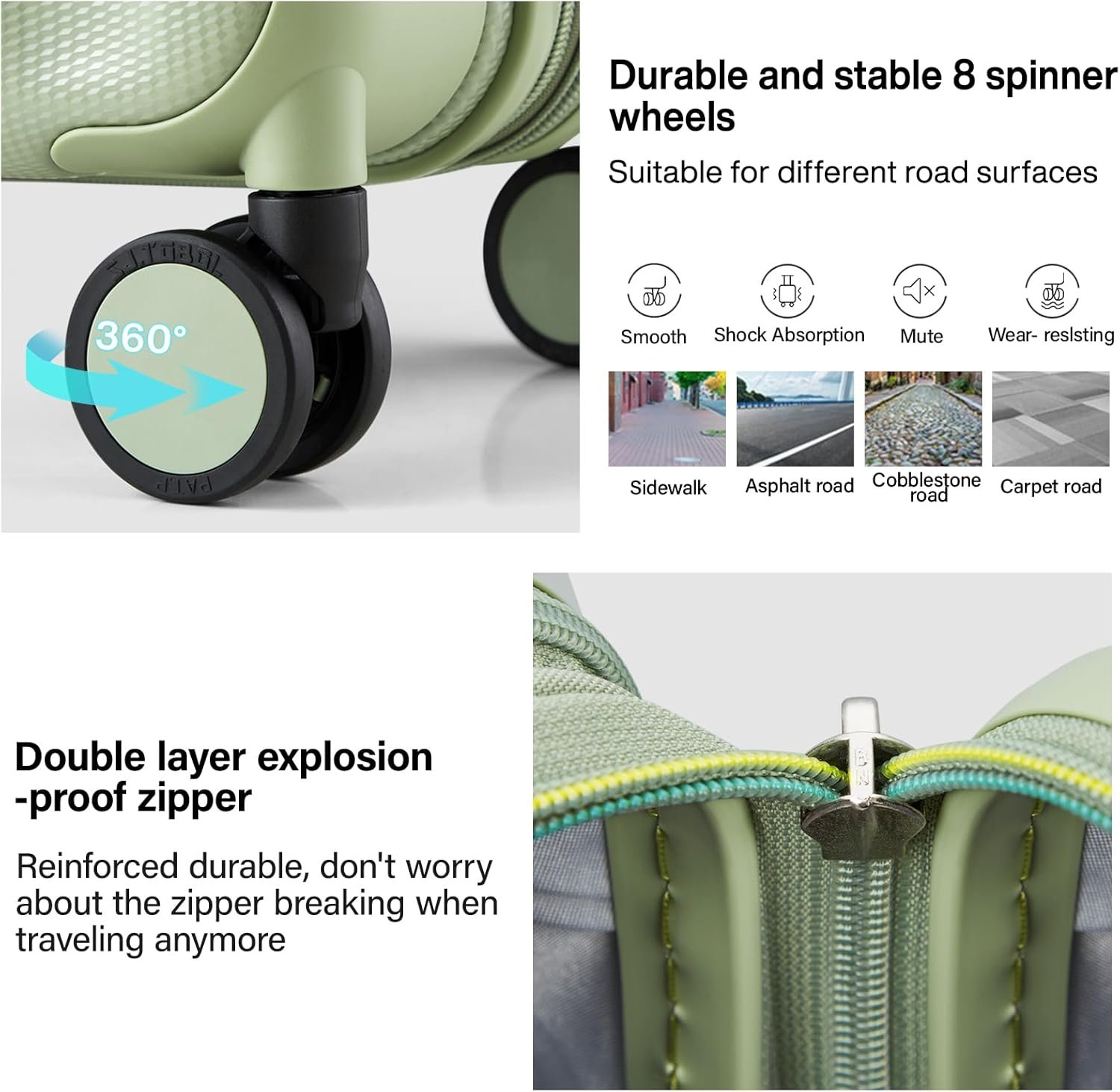 Hanke 20 Inch Expandable Carry on Luggage 22x14x9 Airline Approved Lightweight PC Hard Shell Suitcases with Wheels Travel Luggage Rolling Suitcase Travel Luggage Bag for Weekender(Bamboo Green)