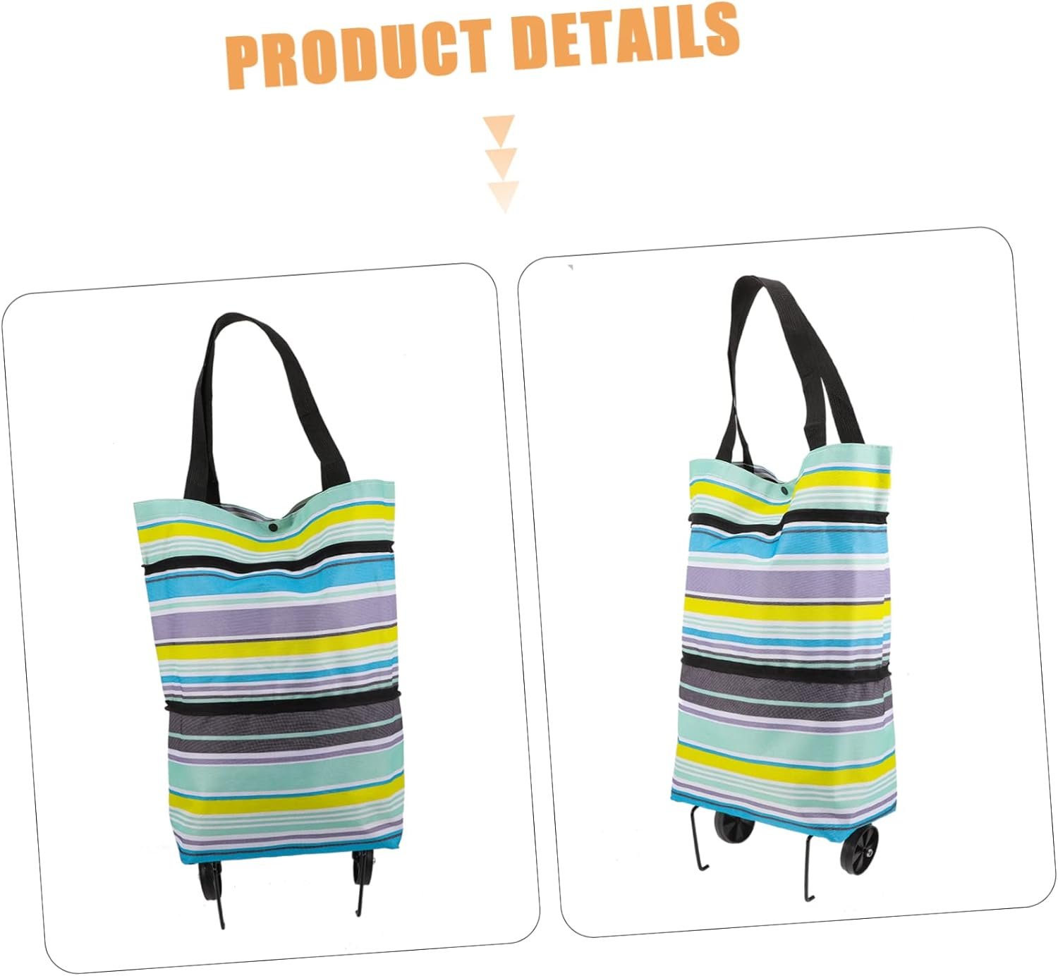 – The wheels on the shopping bag make it can be used as a trolley bag, and when not in use, can be folded trolley bag.