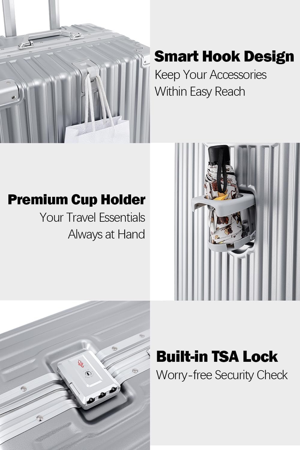 BUILT-IN CUP HOLDER: Stay organized at the airport with our convenient cup holder design. Keep your coffee or water bottle secure while managing your travel documents or using your phone – a practical feature you’ll use every trip.