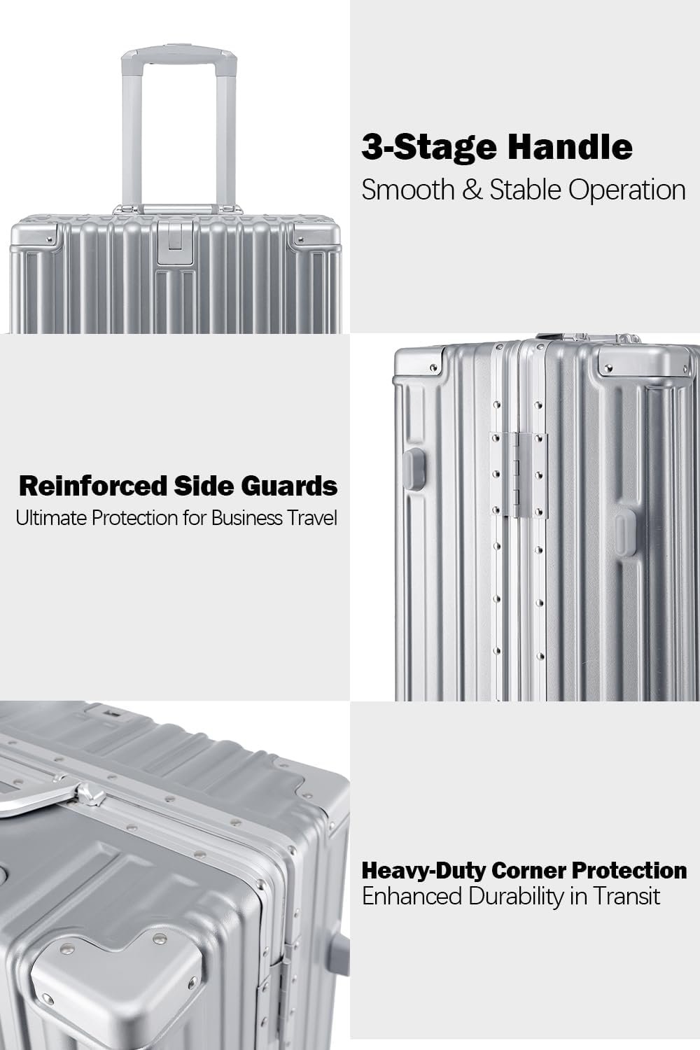 SECURE ALUMINUM FRAME: Say goodbye to broken zippers with our zipperless hard shell luggage. Featuring a sturdy aluminum frame and easy-to-use latches, this suitcase offers better security and smoother access to your belongings.