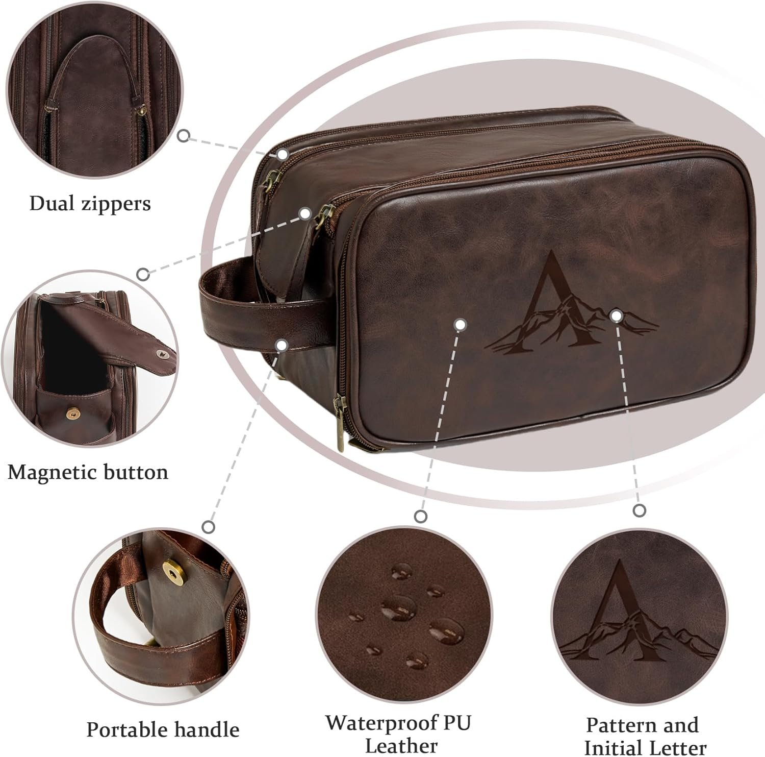 Janhavi Gifts for Him, Personalized Initials & Mountain,Waterproof Toiletry Bag For Shower Caddy, Makeup Organizer Travel Bag, Men’s Accessories Case, Mens Travel Bag Toiletry (Dark Brown F)