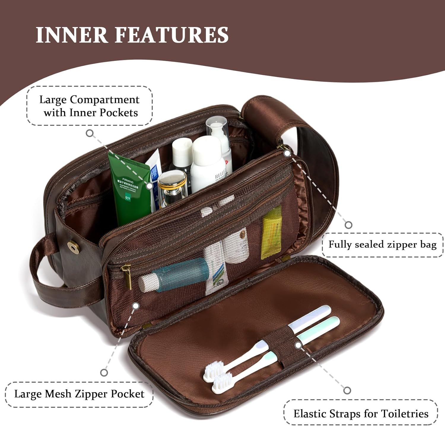 This leather dopp kit is a unique gift for men or women. (Brown & Dark Brown)