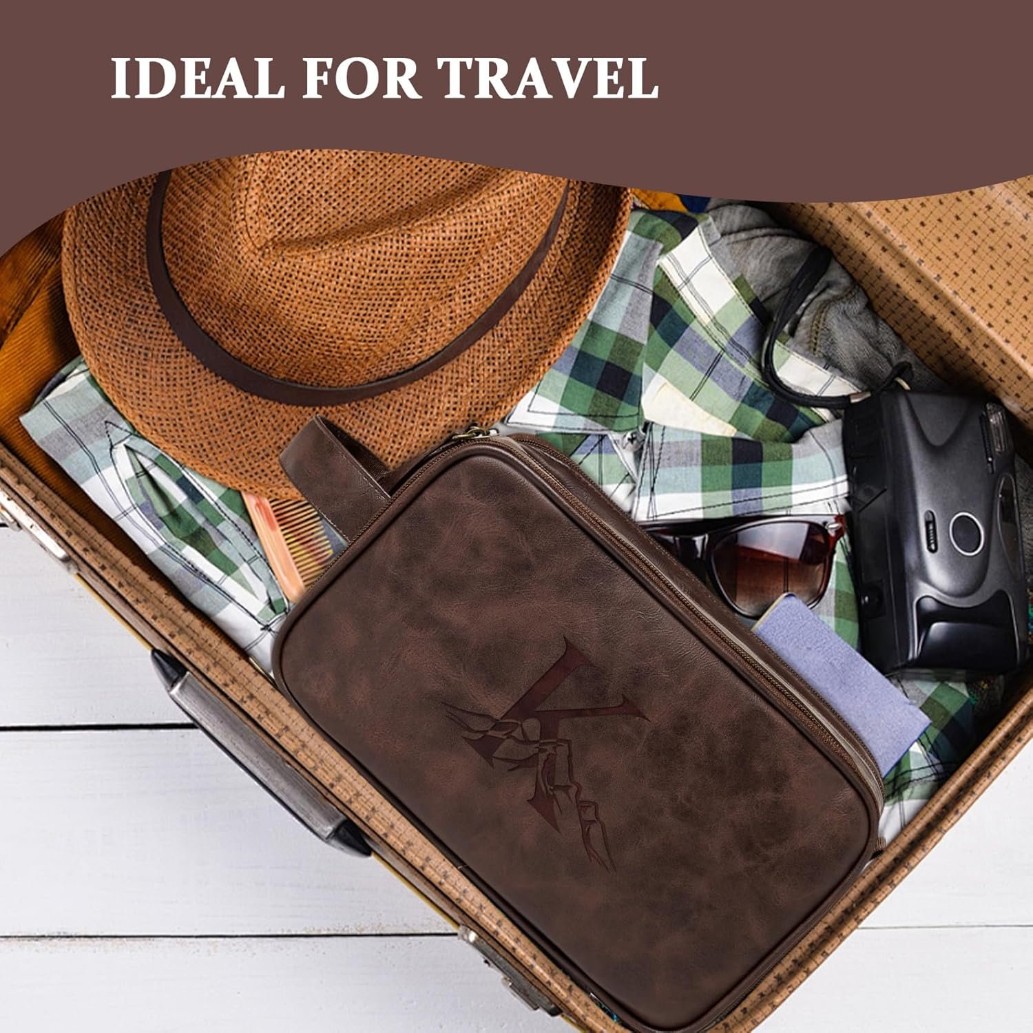 🎁【Handcrafted Engraved Initials & Mountain】Janhavi premium PU leather toiletry bag for men has different Initials that are very suitable for your name. The mountain is a powerful symbol that resonates deeply with the American spirit (perseverance, ambition, and the pursuit of greatness). We use professional manual laser engraving technology which ensures that the Initials and patterns of each makeup bag is so unique. Vintage leather dopp kit is available in following colors: brown, dark brown