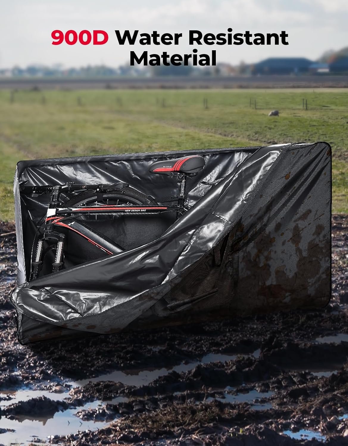 Higher quality high-hardness water-resistant material: The thick bike travel bag is made from 900D Oxford fabric with a PU coating, making it water-resistant and durable. This provides better protection for the bicycle against scratches and rust