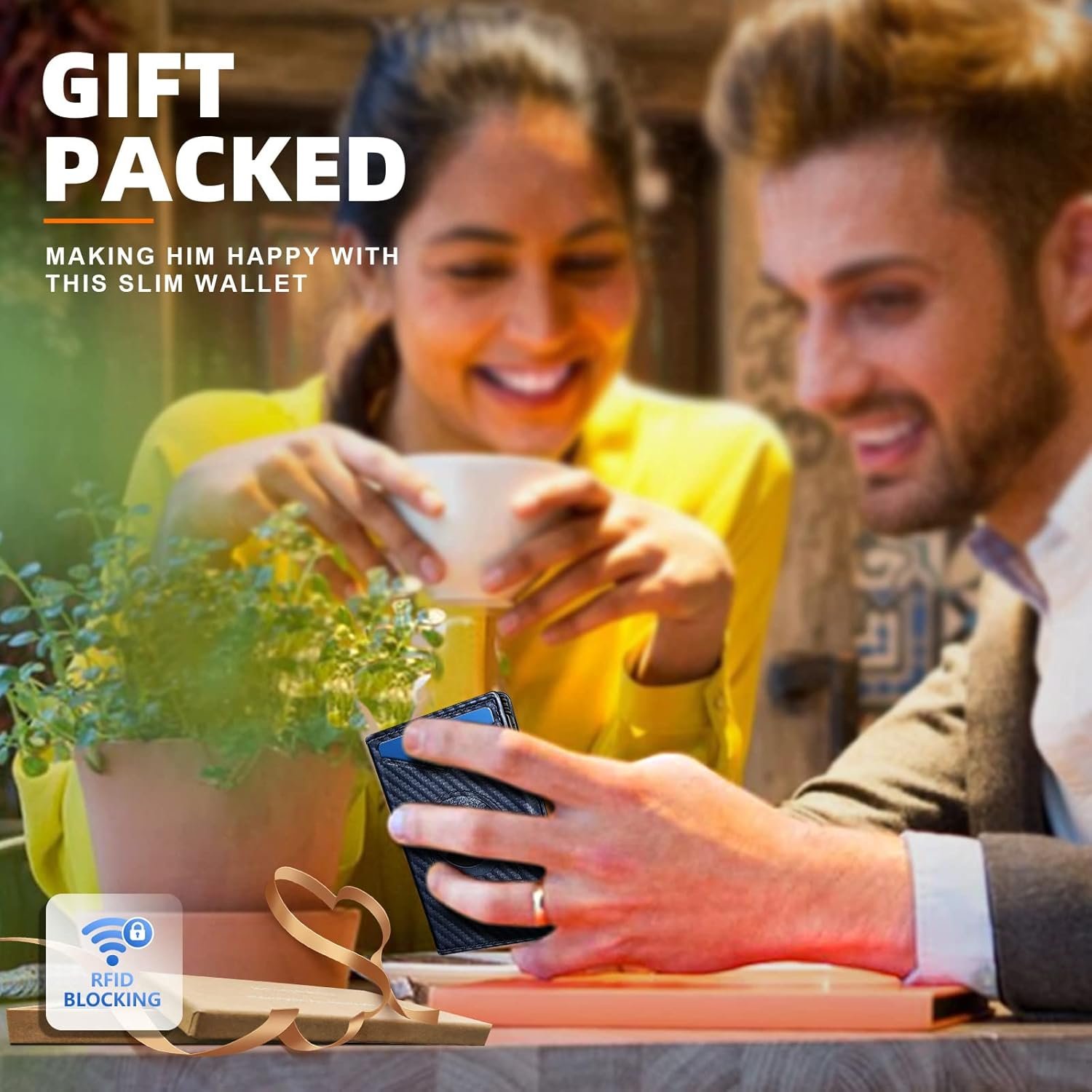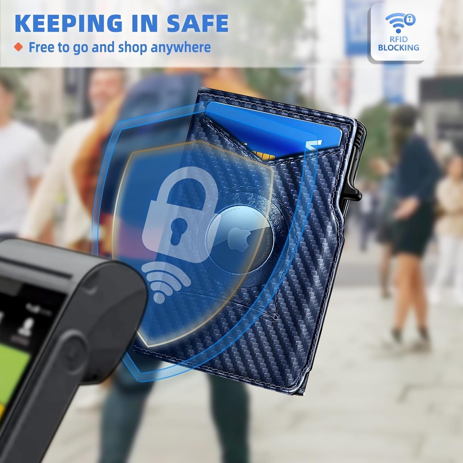 KEMISANT Airtag Wallet Men,Mens Slim Front Pocket Wallet Money Clip Standard or Apple Airtag Use 3.8″×2.8″×0.9″