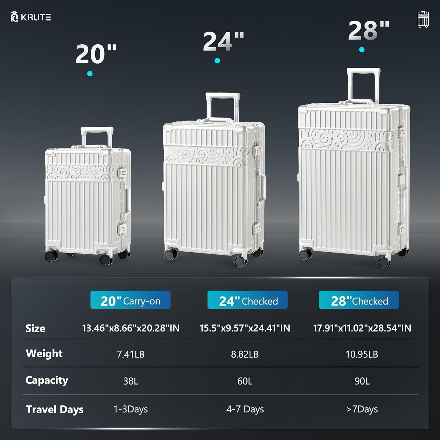 [Corner Aluminum Protection] 4 100% aluminum corners, no need to worry about damages caused by impacts, providing all-around protection for your luggage.