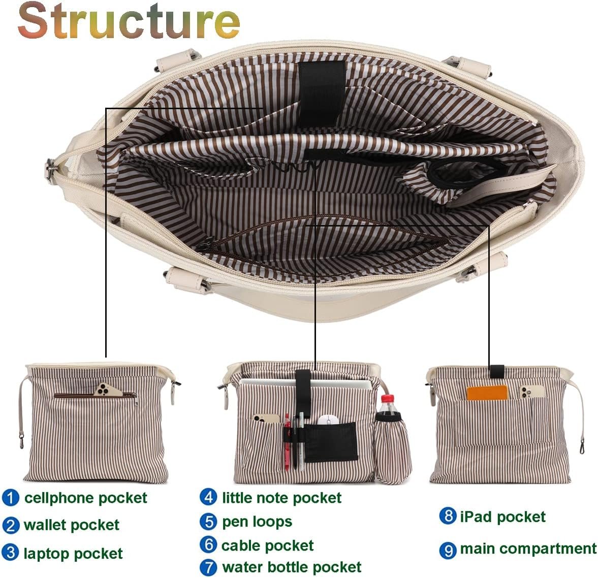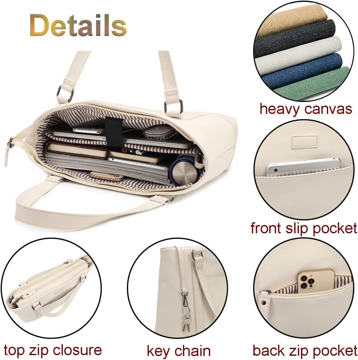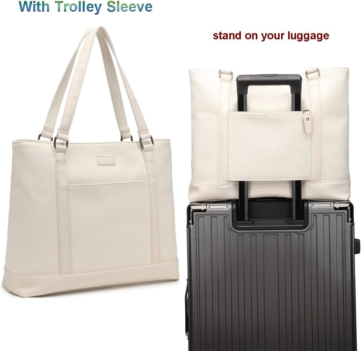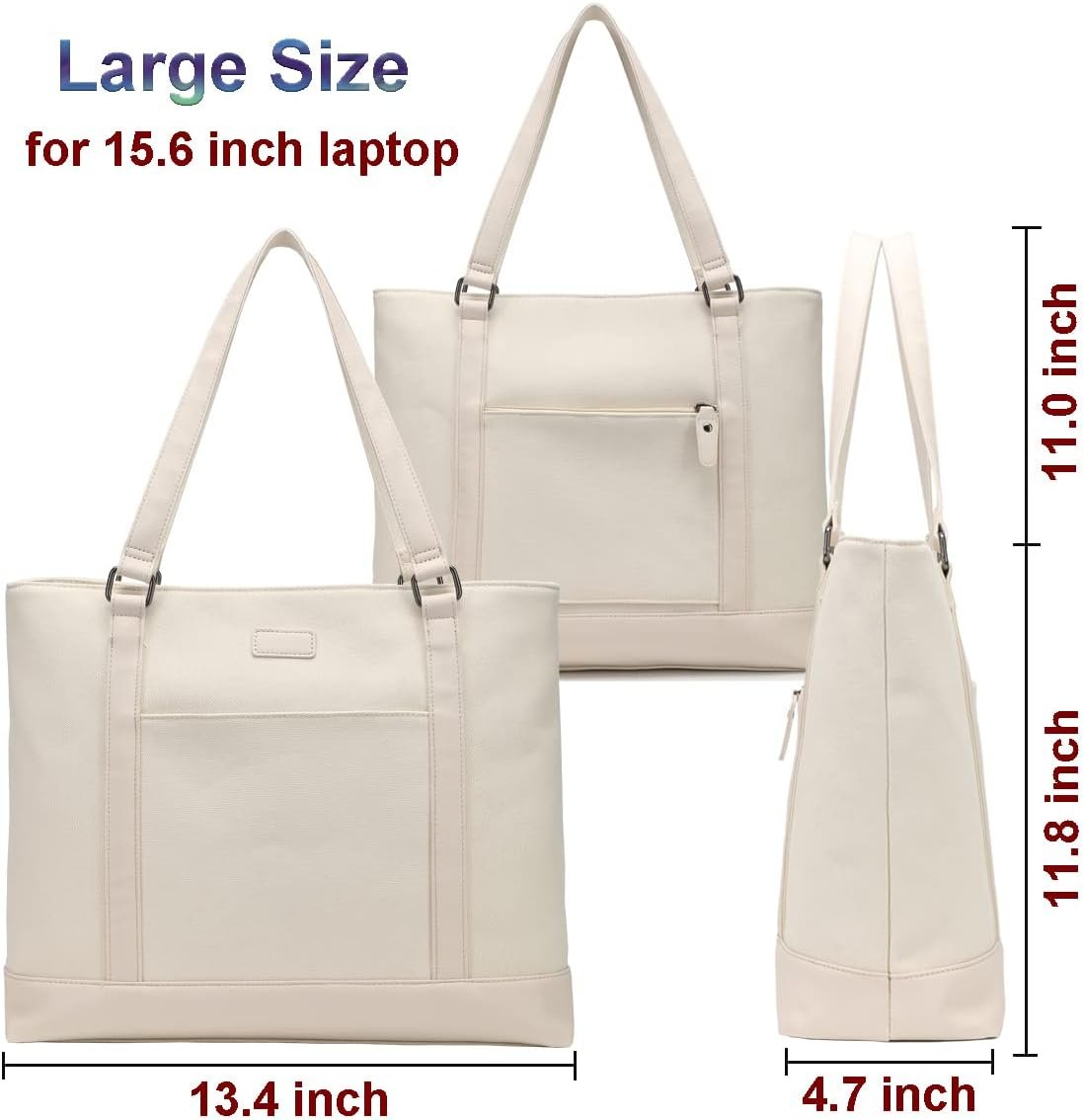 Laptop Bag for Women – Teacher Canvas Tote Bag with Compartments, Work Tote Bag for Travel Office 15.6 Inch