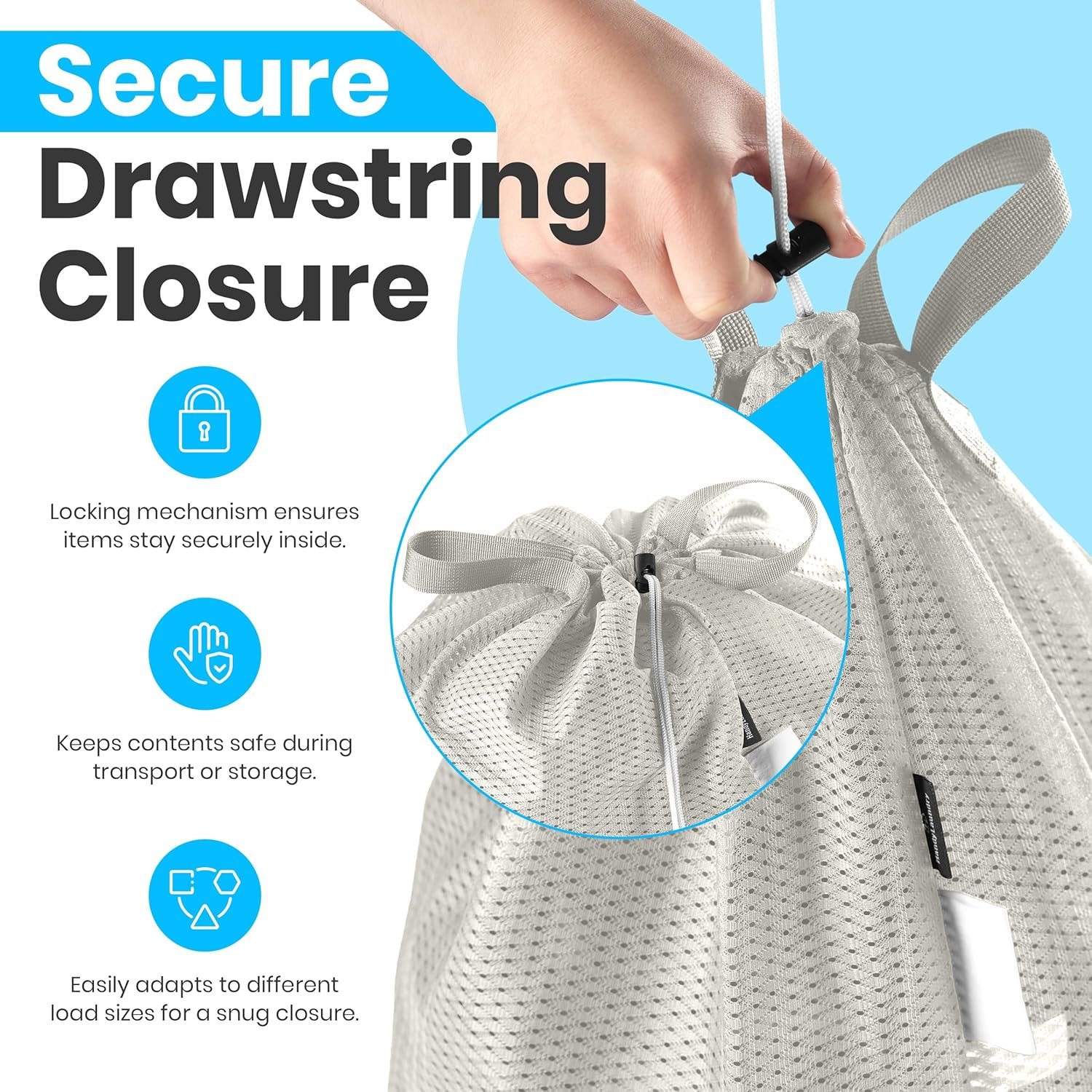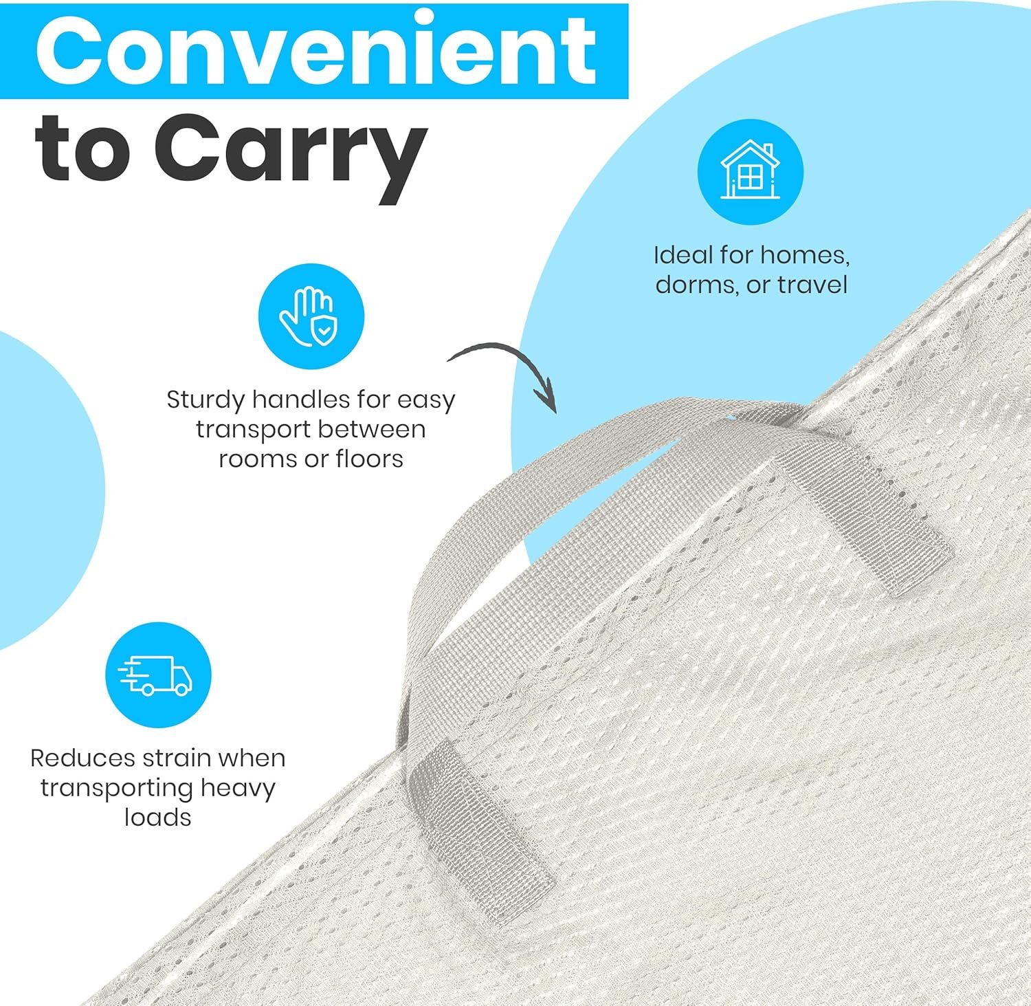 MULTI-PURPOSE USE: Perfect as a mesh laundry bag with handles for laundry, travel, or storage. Ideal for bedding, blankets, sports gear, and more. The breathable mesh design prevents odors and keeps garments fresh