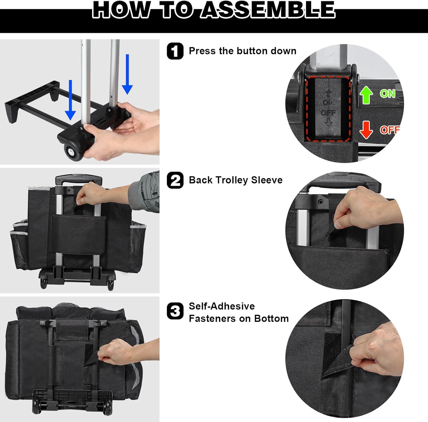 Portable Cleaning Supply Caddy: This 16-inch rolling caddy bag with a detachable trolley, various heights can be adjusted to meet more needs, up to 35.8in/91cm, and can also be folded to save spaceoffers convenient storage and mobility for cleaning supplies