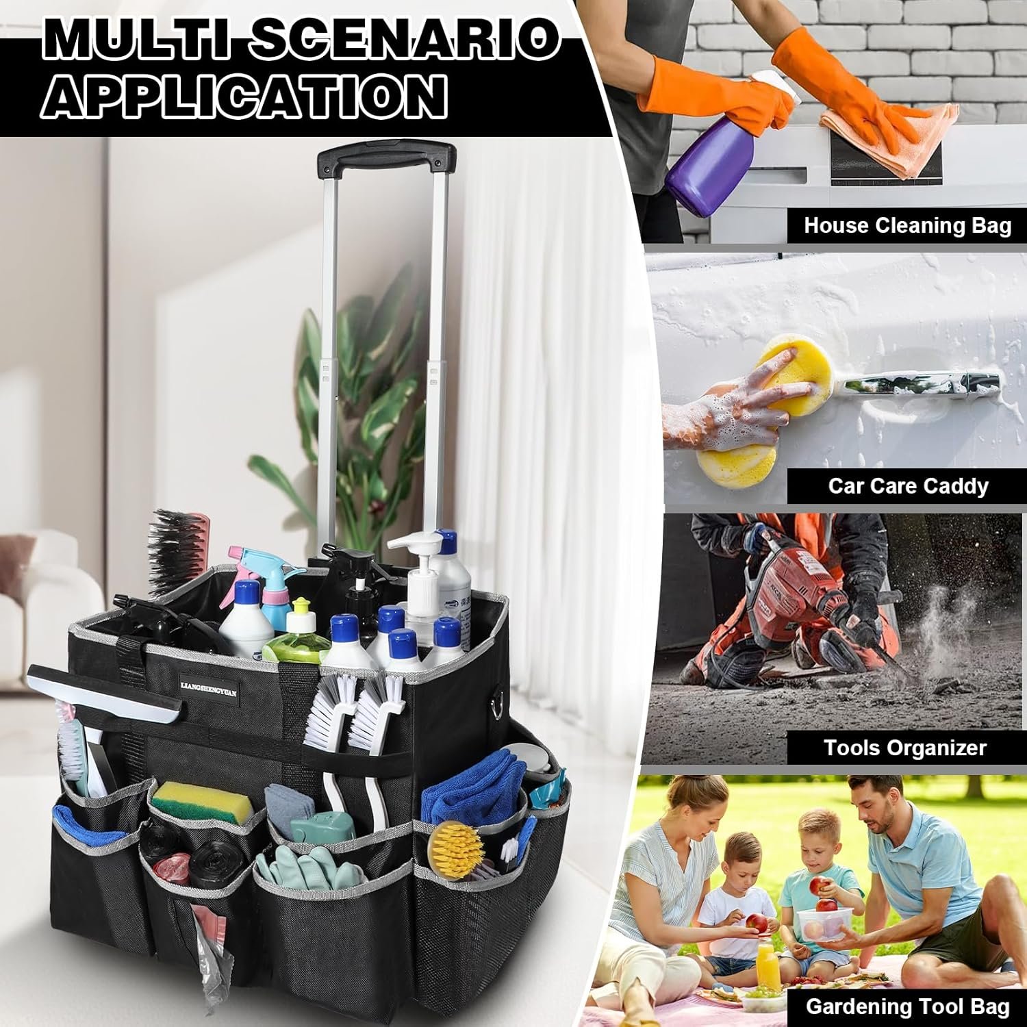 Multifunctional Rolling Cleaning Caddy: Large cleaning caddy bag have 4 ways to carry, a wide range of applications for home, car, office, picnic, transportation. Is suitable for fcleaners, housekeepers and domestic workers to efficiently and conveniently organize daily necessities