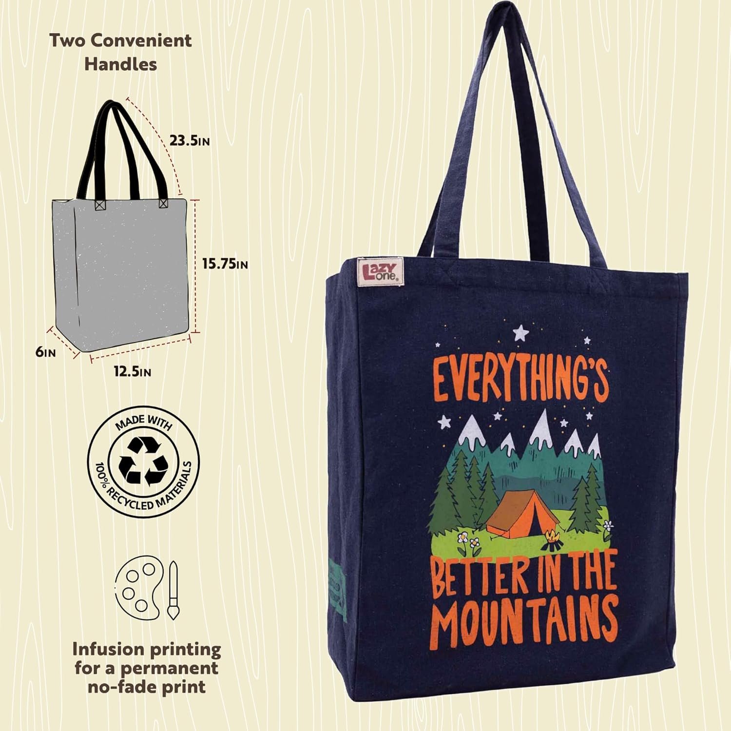 Lazy One Canvas Tote Bag, Novelty Tote Bag for Women and Men, Reusable Shopping Bags, Perfect for Shopping, Travel and Work