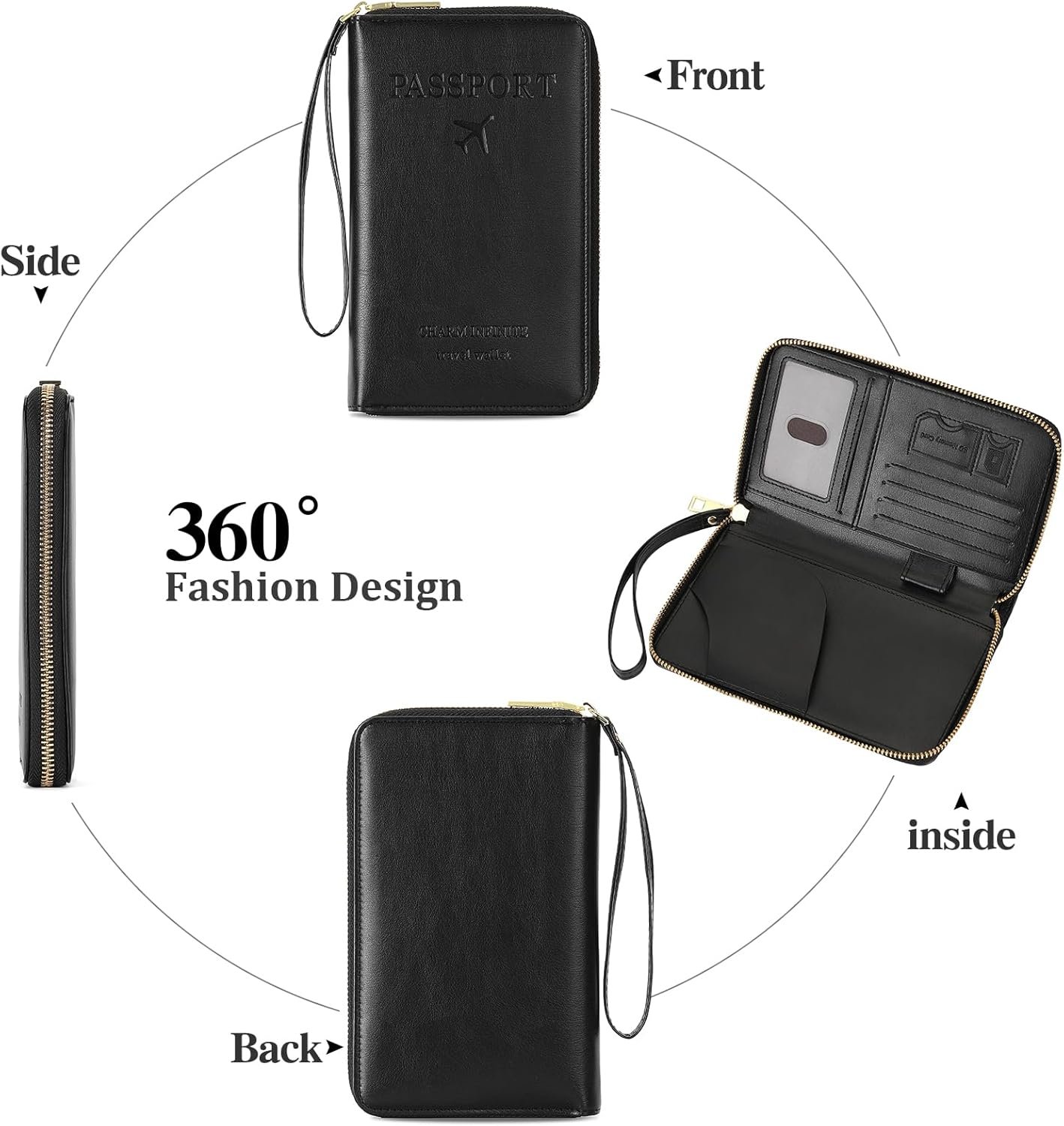 High Quality Material: The clutch passport wallet is made of high quality leather,with soft texture and exquisite workmanship. Designed with shiny golden hardware,heavy duty zipper and quanlity fabric Lining.