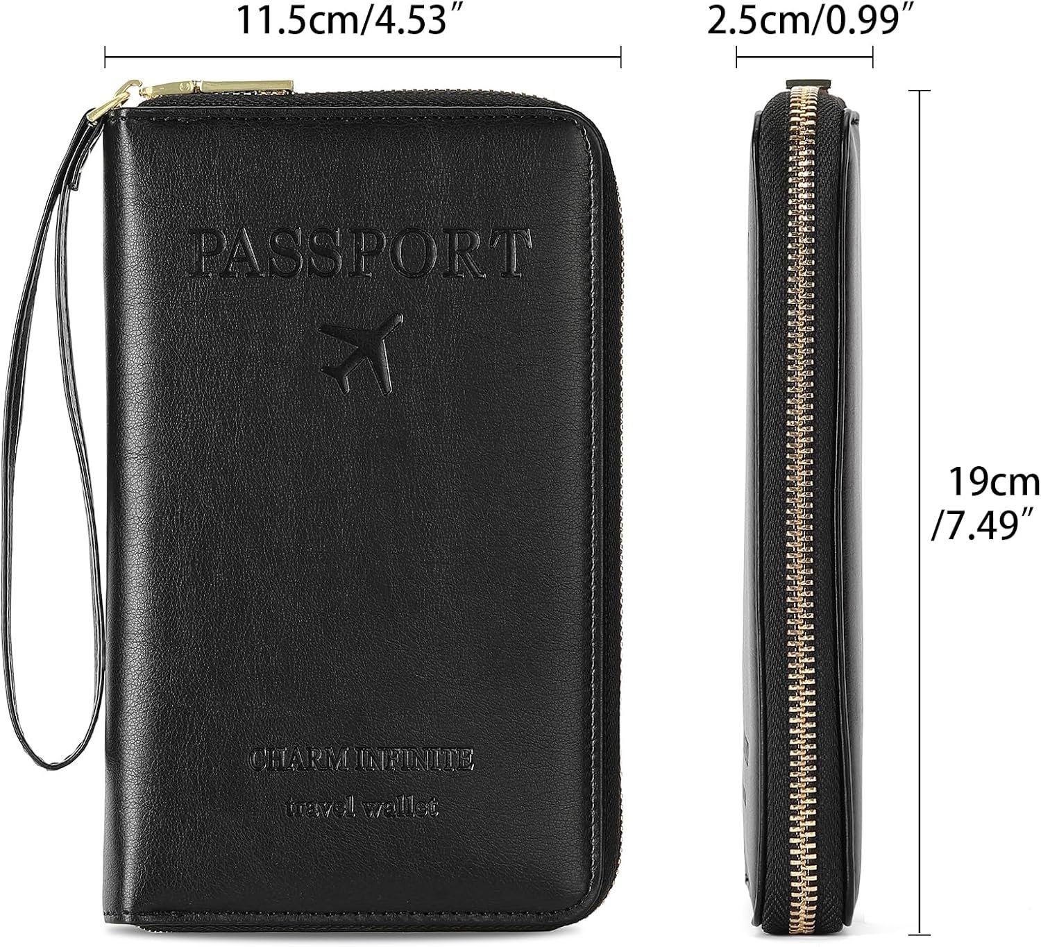 Details of LEEXTON Passport Wallet for Unisex: 100% Vegan Leather (outer and lining material), protect the environment and durable.Printed Airplan pattern, elegant and unique. With RFID blocking, it’s a safe wallet for cards and money. Bi-fold structure, large capacity but compact size, easy to carry on. High Quality Hardware & Sturdy Stitching, detailed stitching, no loose threads left. Safe zipper closure.
