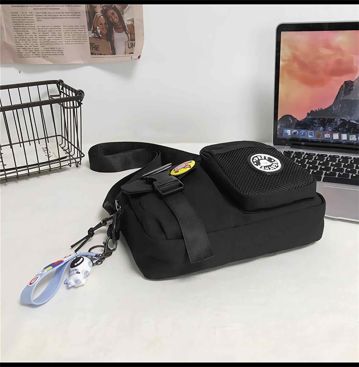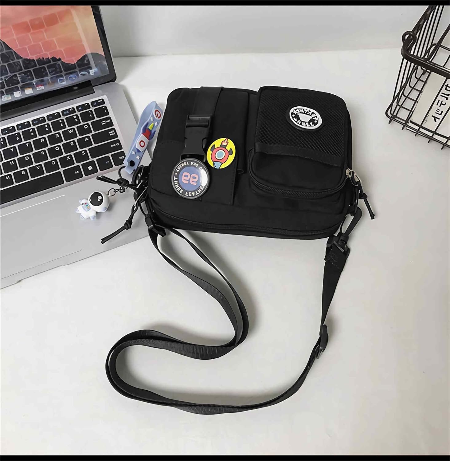 Lefe Liee Black Crossbody Bag for Men – Cute Small Messenger Sling Shoulder Bag – Men’s Gift