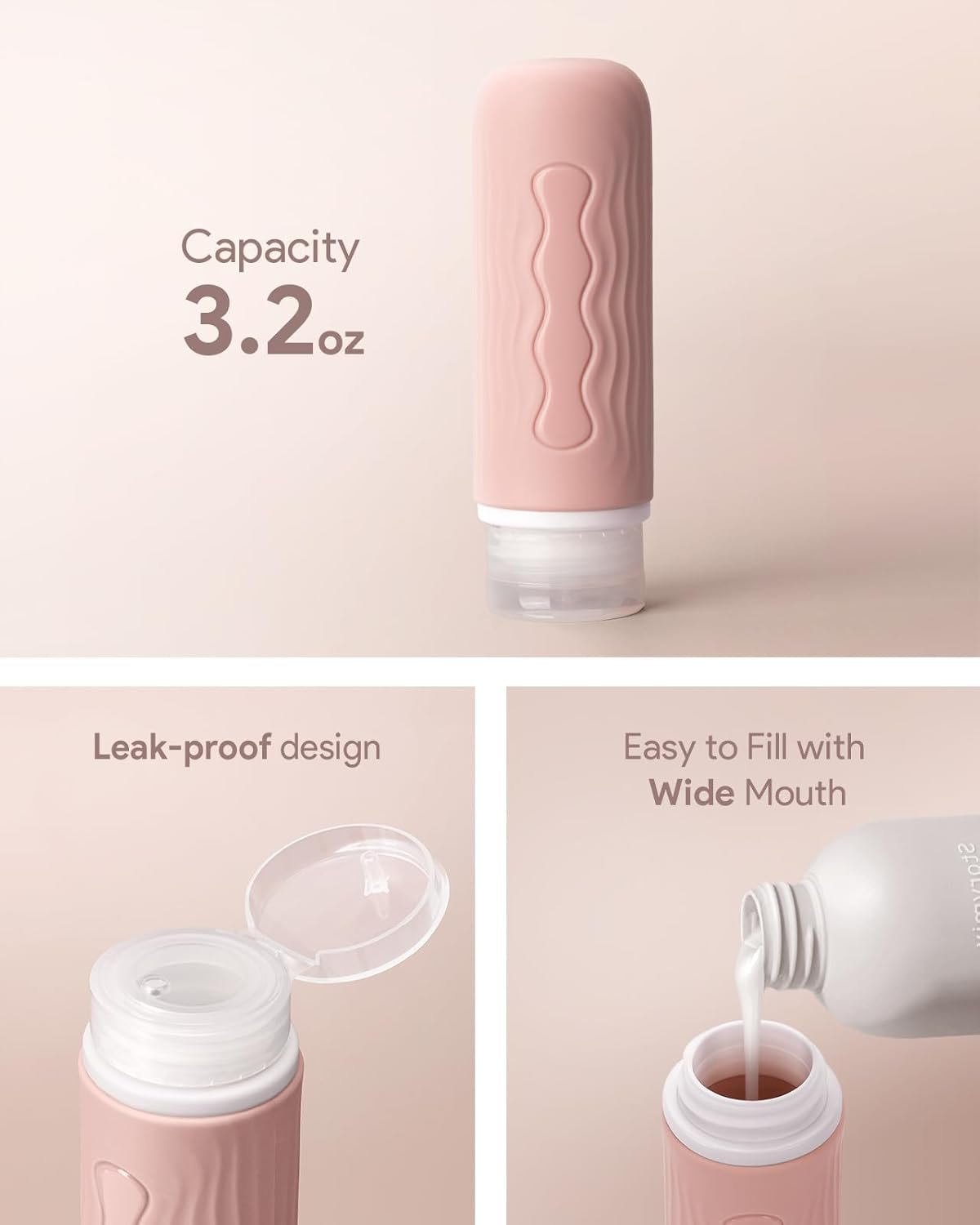 3 In 1 Wash Bag: Our set contains travel-size products, including 1 wash bag, 4 travel bottles (3.2 oz) and 2 travel canisters (1.2 oz) for a one-stop-shop for your travels.