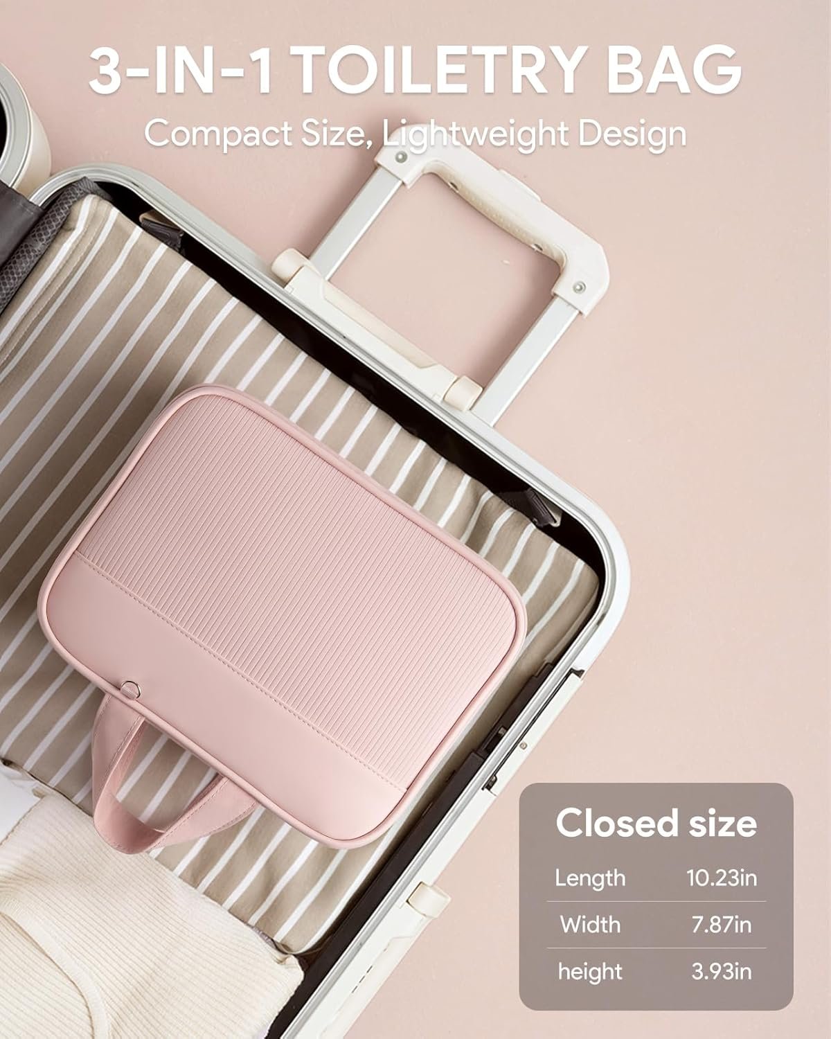 360 Degree Swivel Hook – The 360 degree swivel hook allows the toiletry bag to be hung almost anywhere for easy access. Whether it’s for washing up or skincare and make-up, you’ll have a great experience!