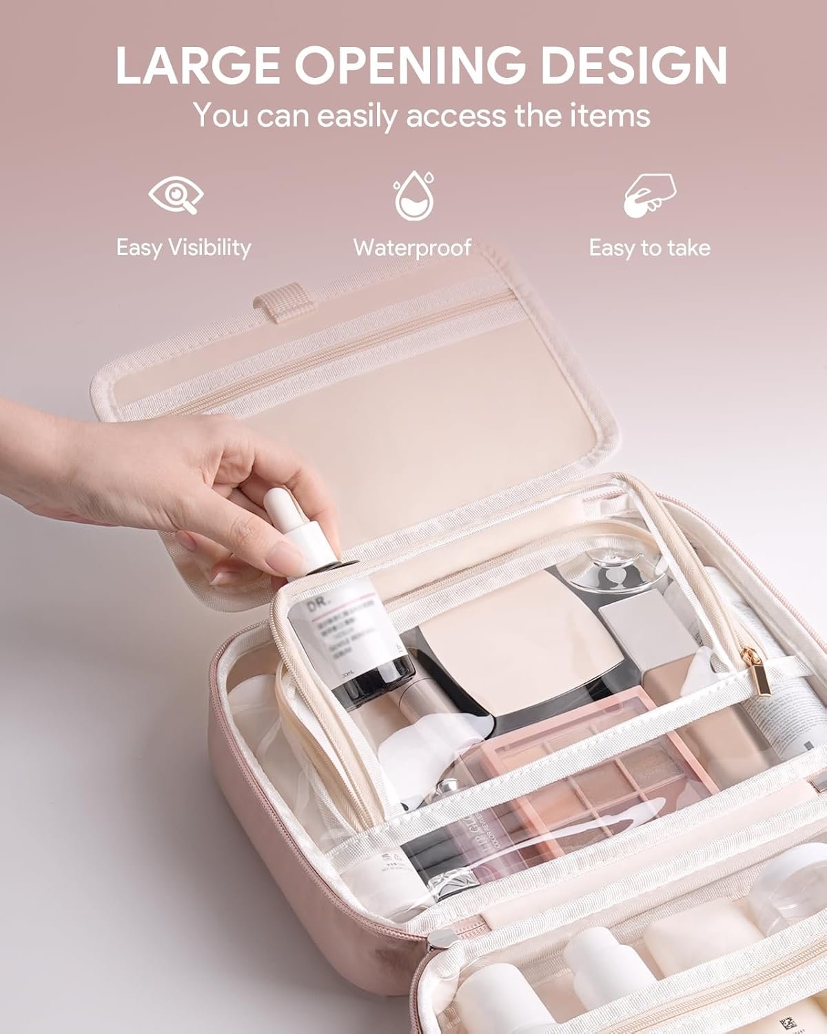 Lotour Travel Toiletry Bag for Women with Travel Size Silicone Containers Set, Hanging Toiletry Bag for toiletries, Cosmetic Bag Travel Organizer (Pink)