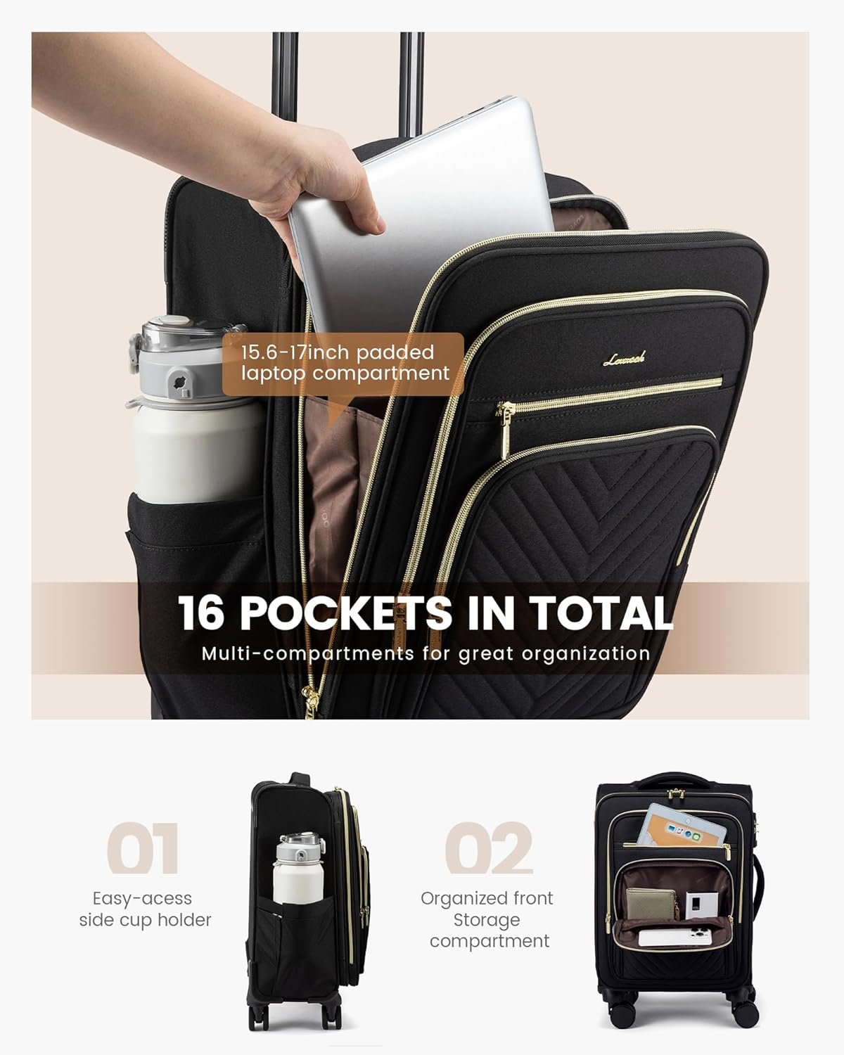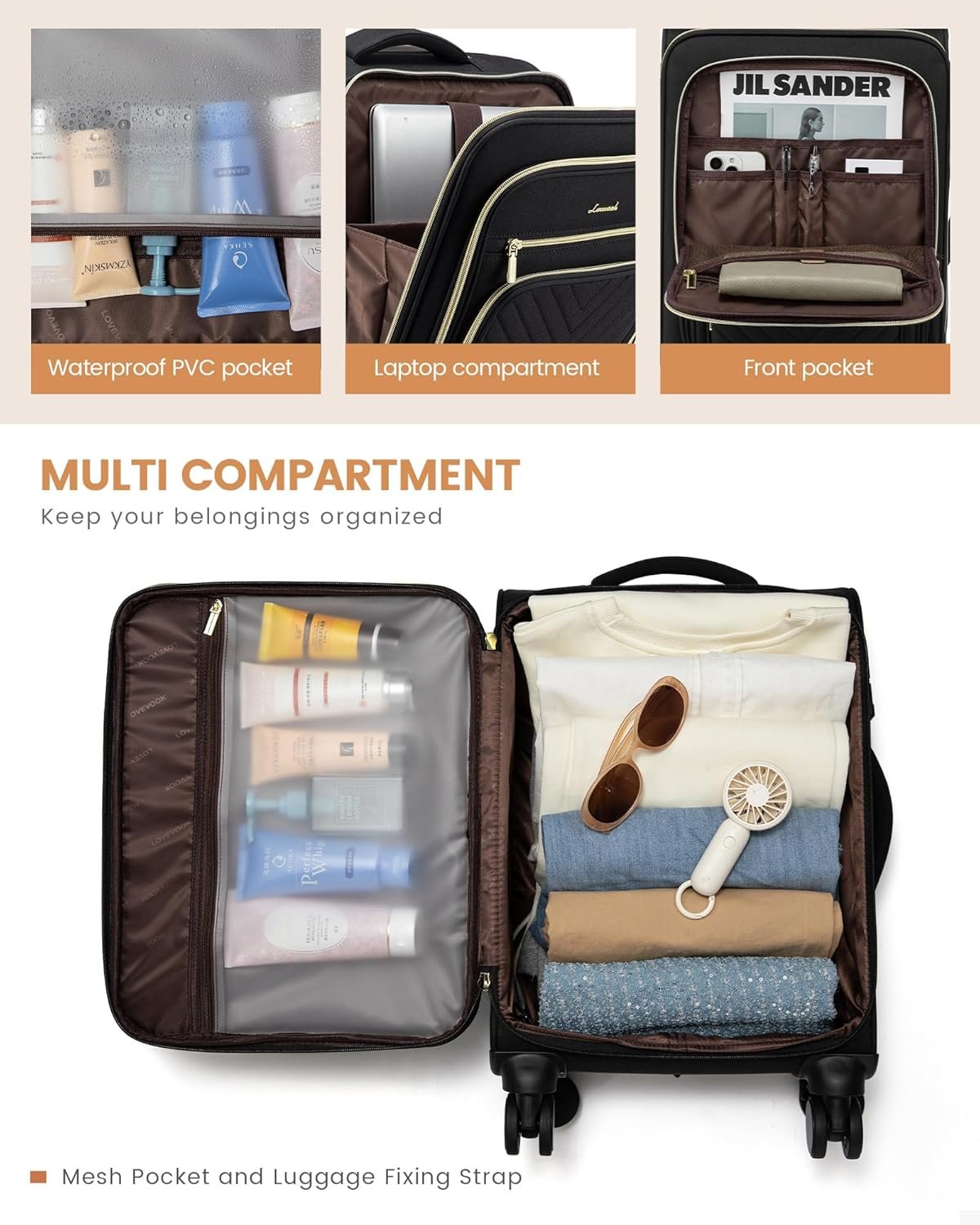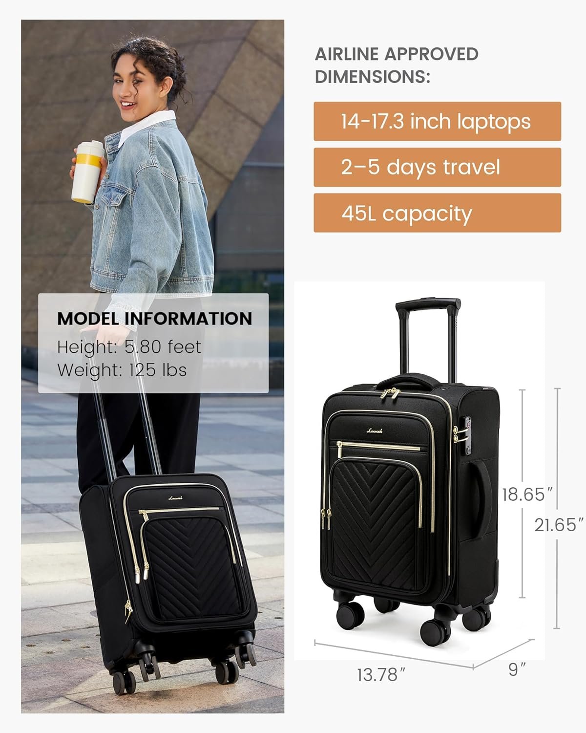 LOVEVOOK Carry On Luggage 22x14x9 Airline Approved,20 Inch Carry On Suitcases with Wheels,Softside Rolling Suitcase with TSA Lock for Women Men,Lightweight Travel luggage