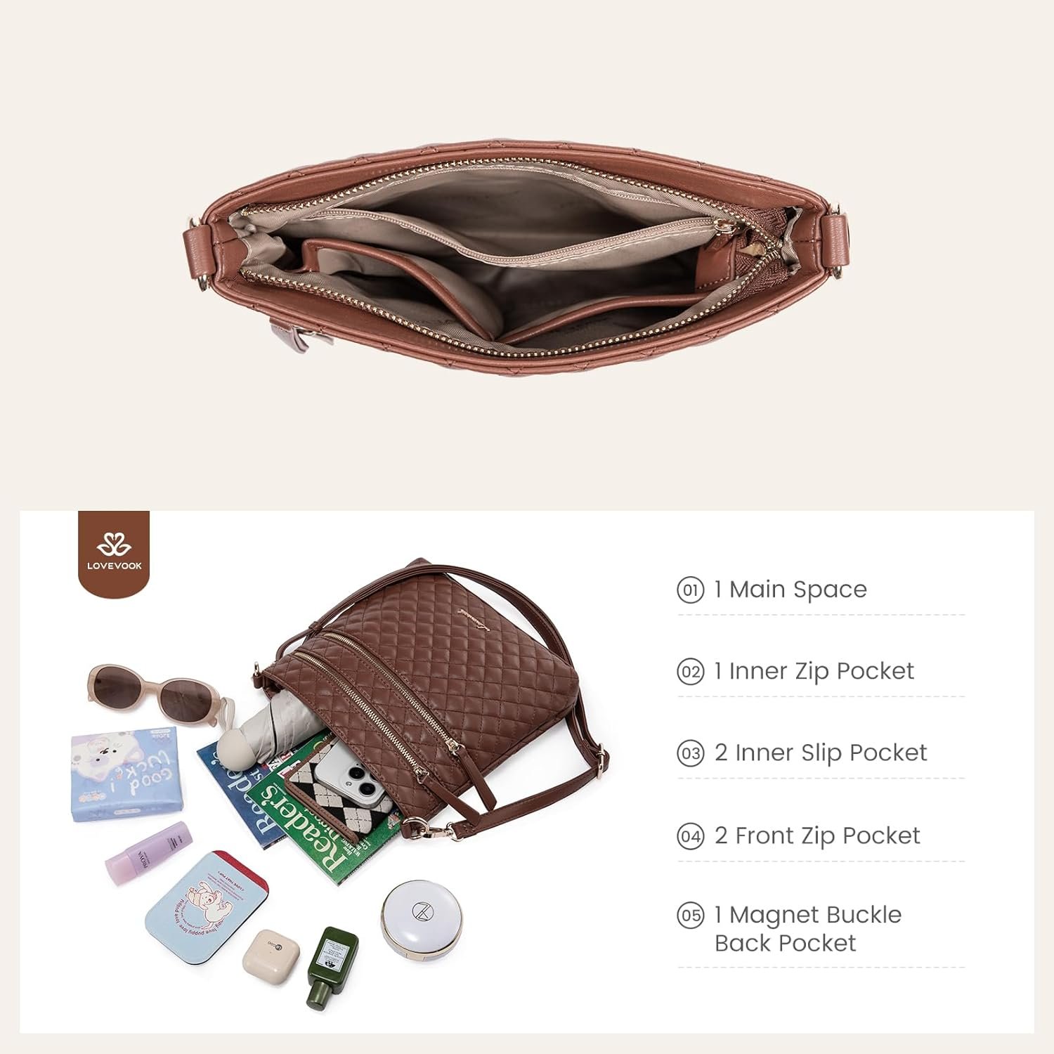 LOVEVOOK Crossbody Purses for Women, Multi Pocket Casual Crossbody Bag, Medium Shoulder Bag Vegan Leather Handbags